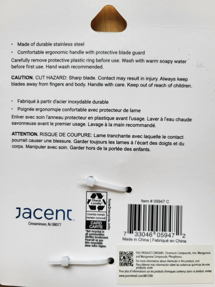 Stainless Steel and comfortable Ergonomic Handle. Please see pictures for details.