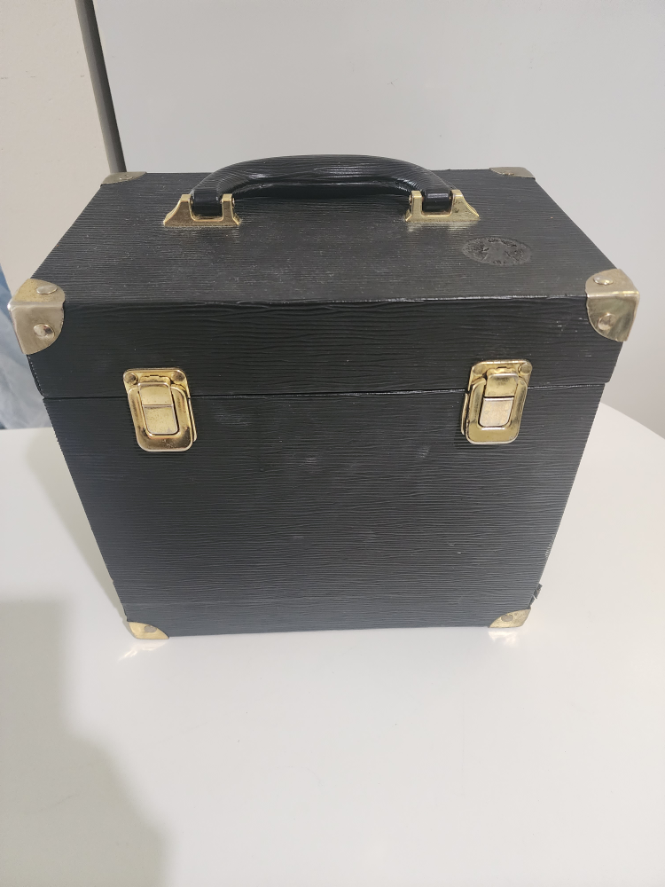Vintage black art supply box. It's a great way to store your art supplies or use it as a unique storage piece. The box is in good condition and has a handle for easy carrying. Perfect for artists or can be used for makeup or jewelry. Comes with supplies. Giving to any artists.