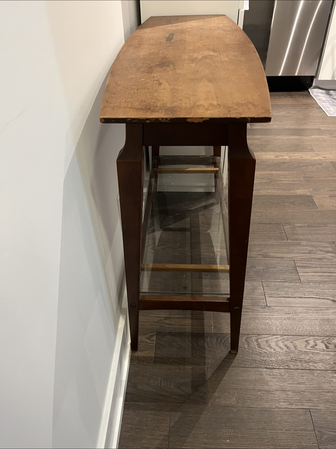 Vintage Wood & Glass Console Table