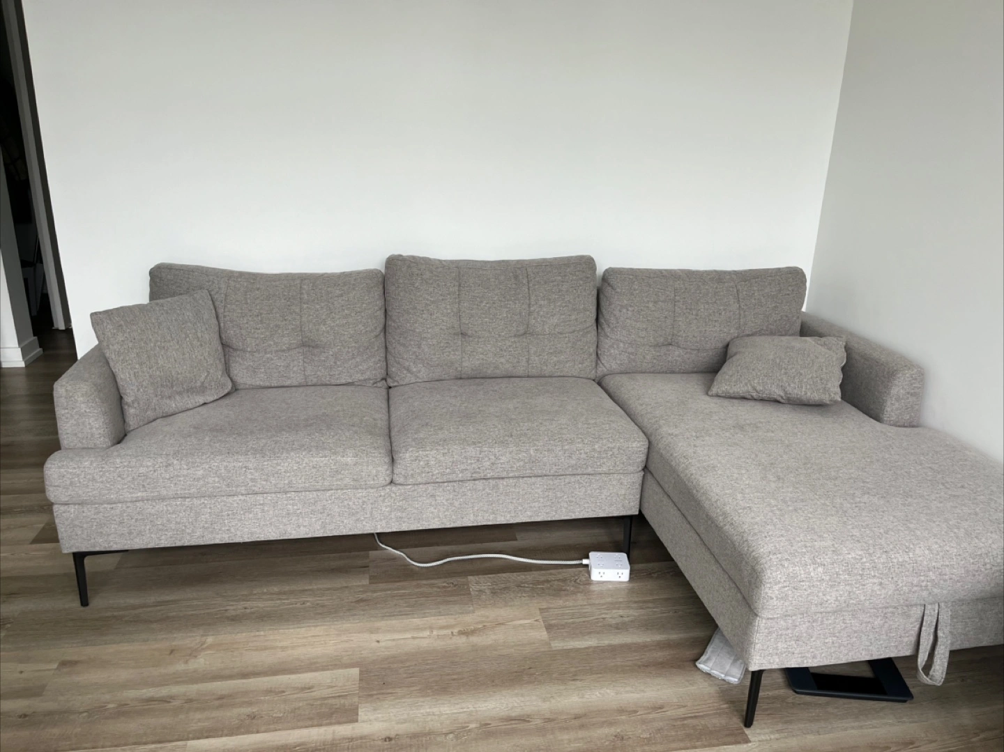 Selling a comfy grey sectional sofa! It's in great shape and has a handy storage compartment. Perfect for lounging and keeping things tidy. The sofa is a stylish addition to any living room