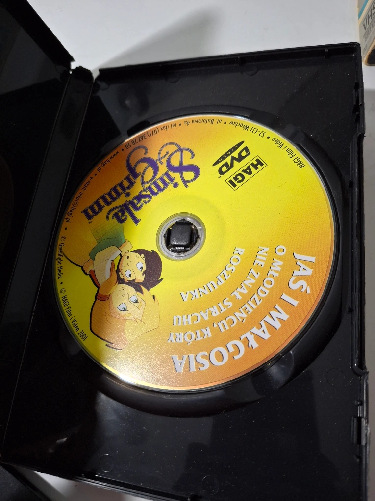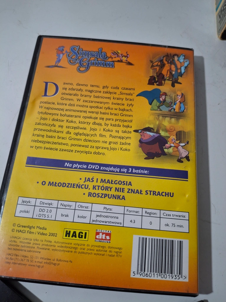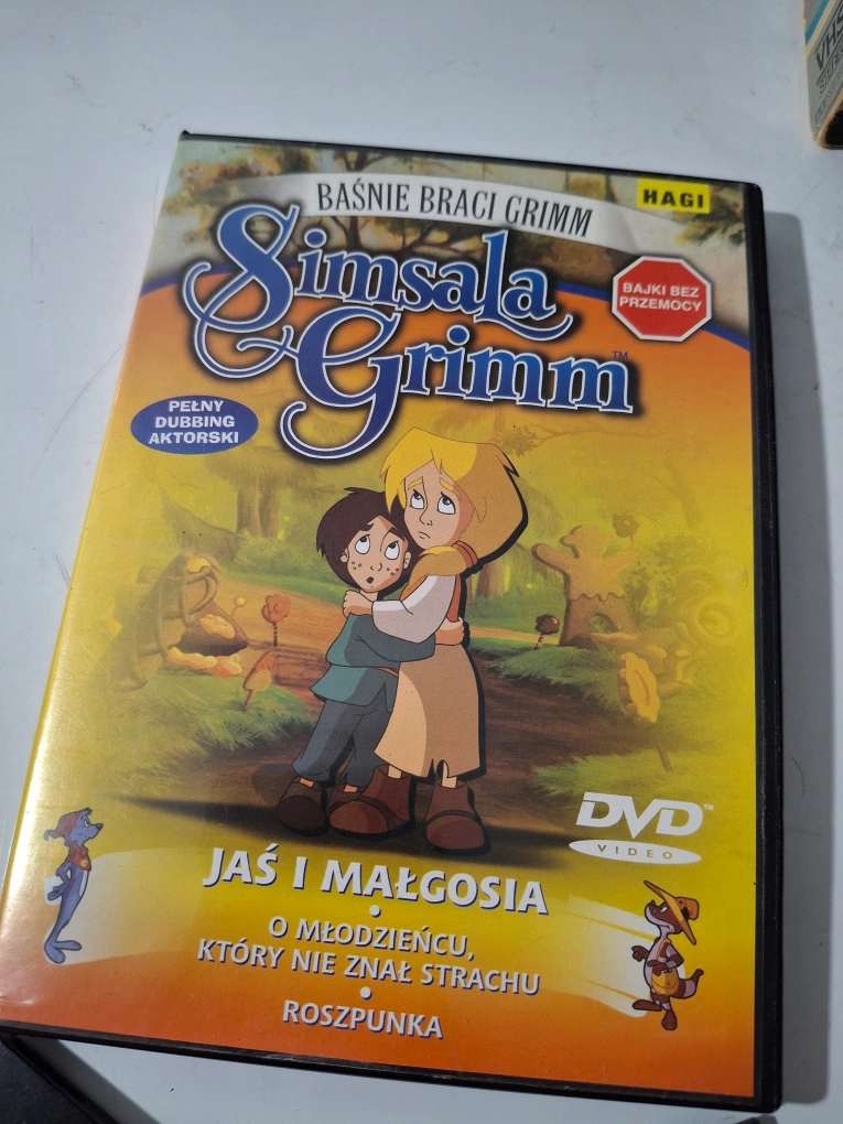 1000+Selling a DVD of 'Simsala Grimm - Baśnie Braci Grimm'. It includes three stories: Jaś i Małgosia, O młodzieńcu, który nie znał strachu, and Roszpunka. Great for kids!