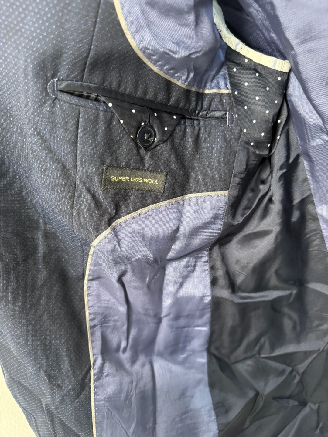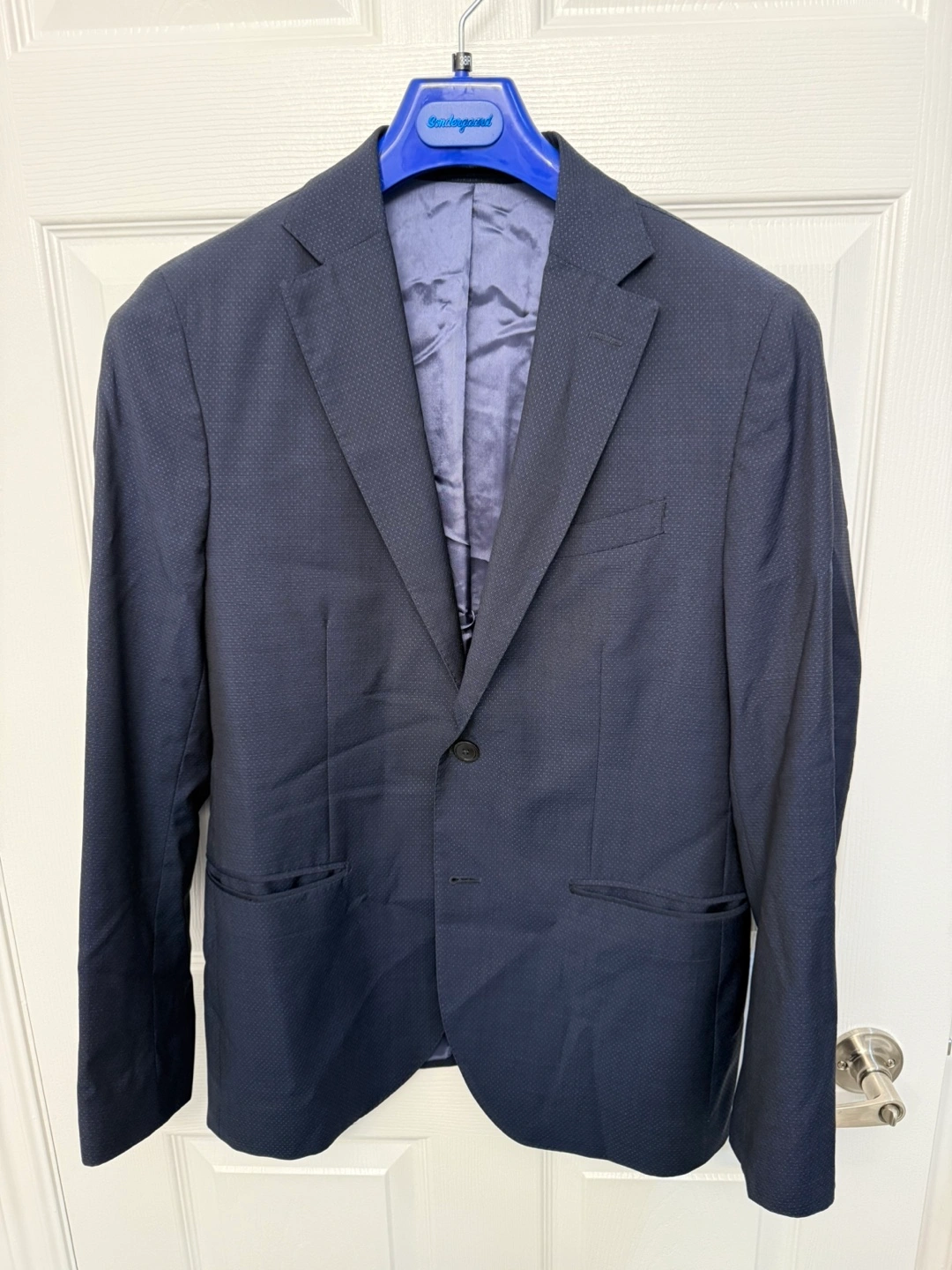 283Selling because no longer fits me. In excellent condition, just wrinkled from storage and needs ironing. Size 38R. Navy blue.