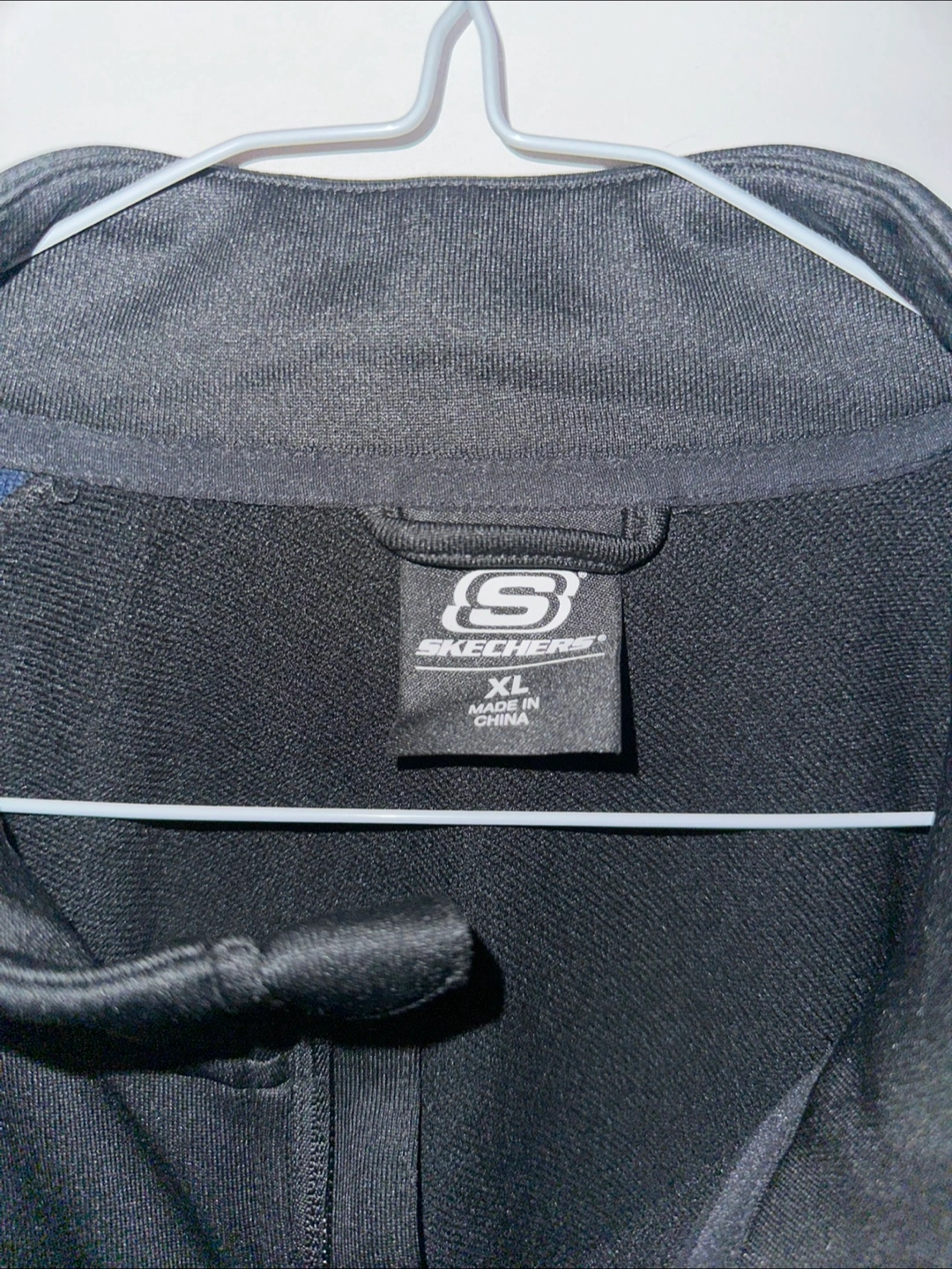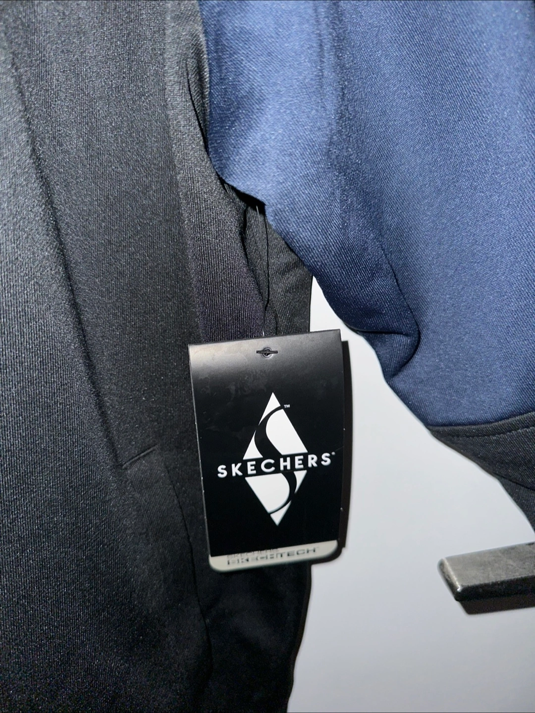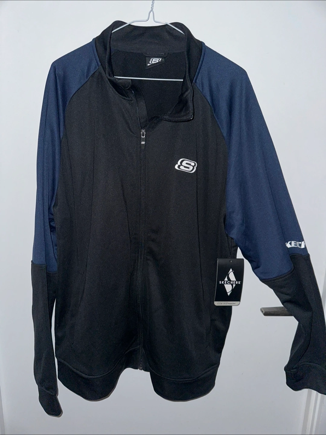 *Brand New, tags attached*. Men’s Skechers zip up athletic jacket in size XL, back and blue colour. Perfect for workouts or casual wear. Slim fit.