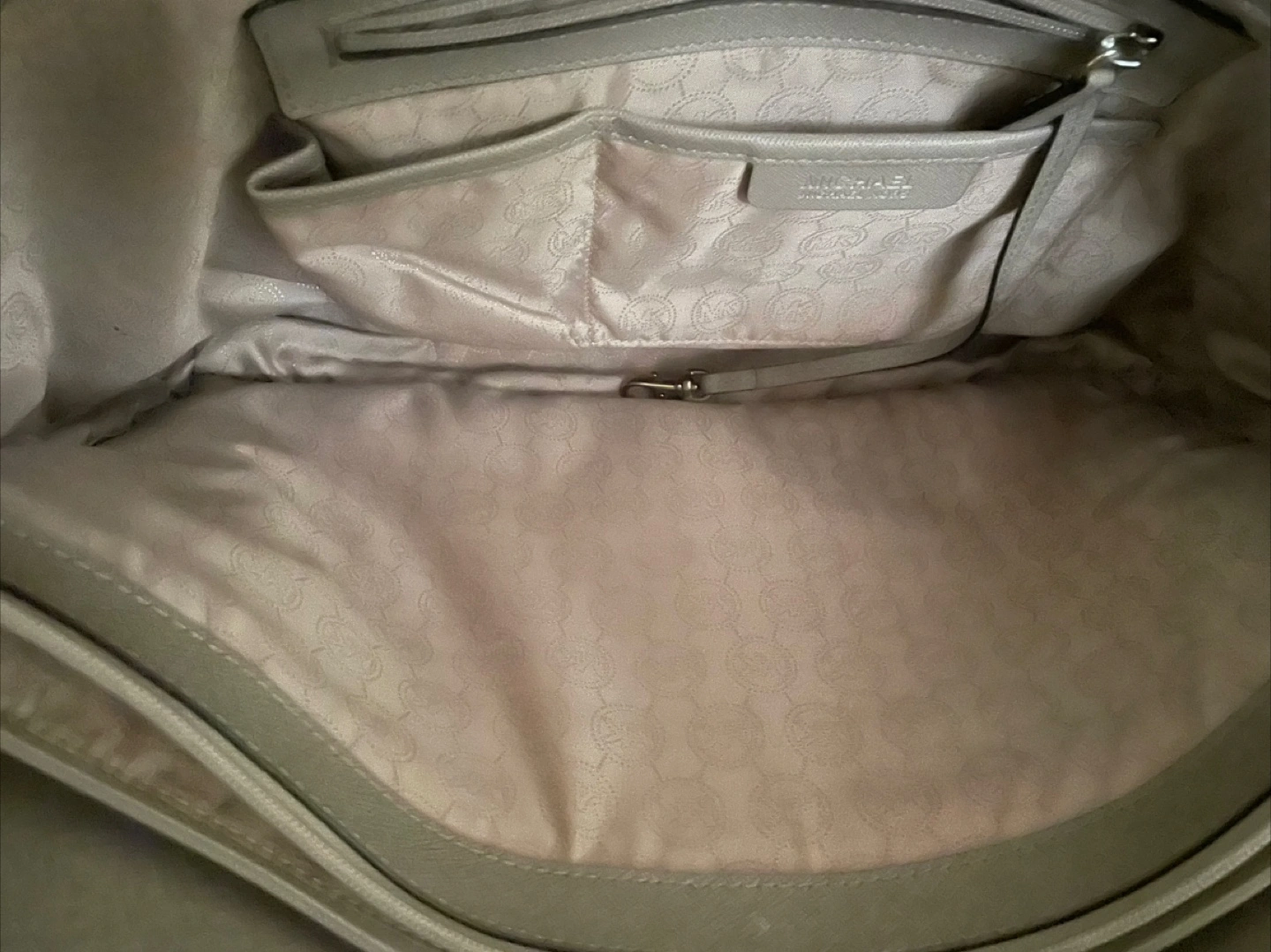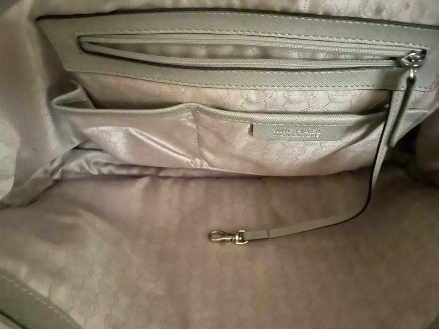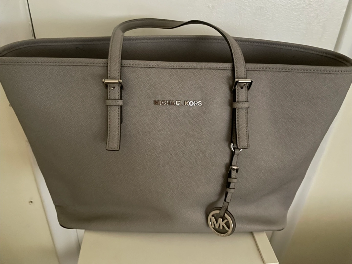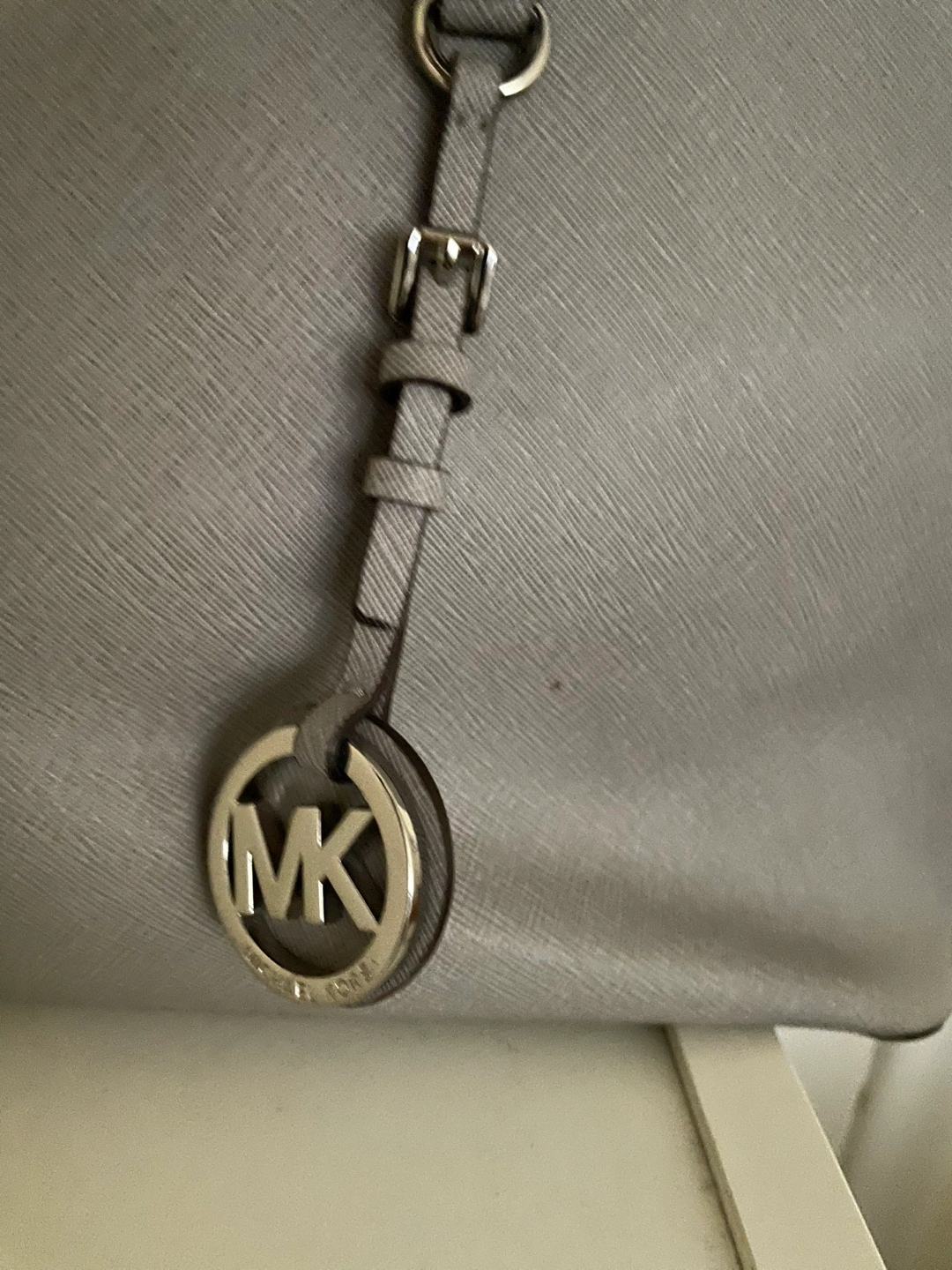 65Gently used Michael Kors bag in a lovely gray colour! It's in great condition and perfect for everyday use. It has the classic MK logo charm. MICHAEL KORS BEAUTIFUL HANDBAG. This one still in stores. EXCELLENT CONDITION. LARGE SIZE. 18” x 11” Pick up in Scarborough Midland and Eglinton Price is reasonable and so firm.