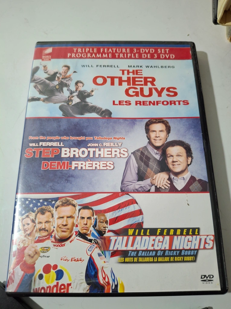 Selling a Will Ferrell Triple Feature 3-DVD set! Includes The Other Guys, Step Brothers, and Talladega Nights triple banger.