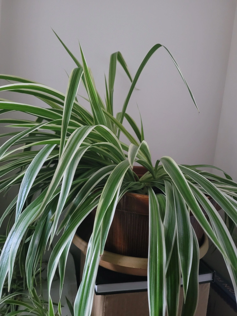 879Selling a healthy spider plant, perfect for adding some greenery to your space! It's easy to care for and great for purifying the air. In a 12" ceramic pot with drainage A perfect plant for beginner plant parents! Trade or $35