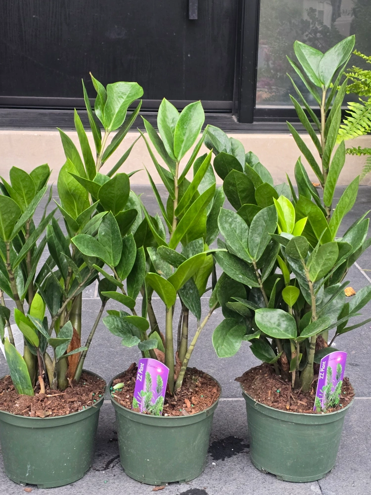 257Here are three ZZ plants ready to brighten your home! They're in green pots and are super easy to care for