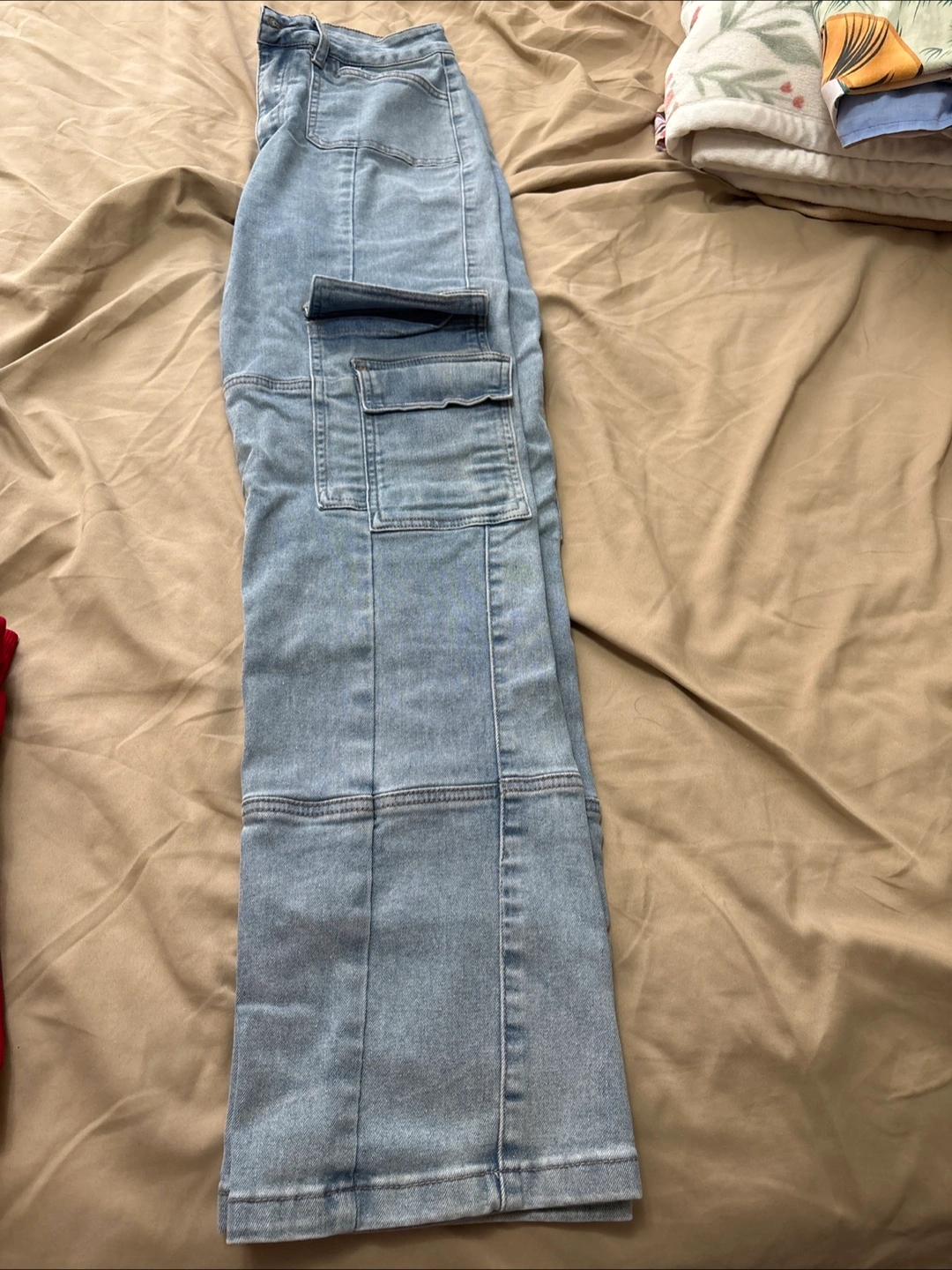 Selling a pair of light blue Forever 21 cargo pants in size 26. They are in great condition and ready for a new home!