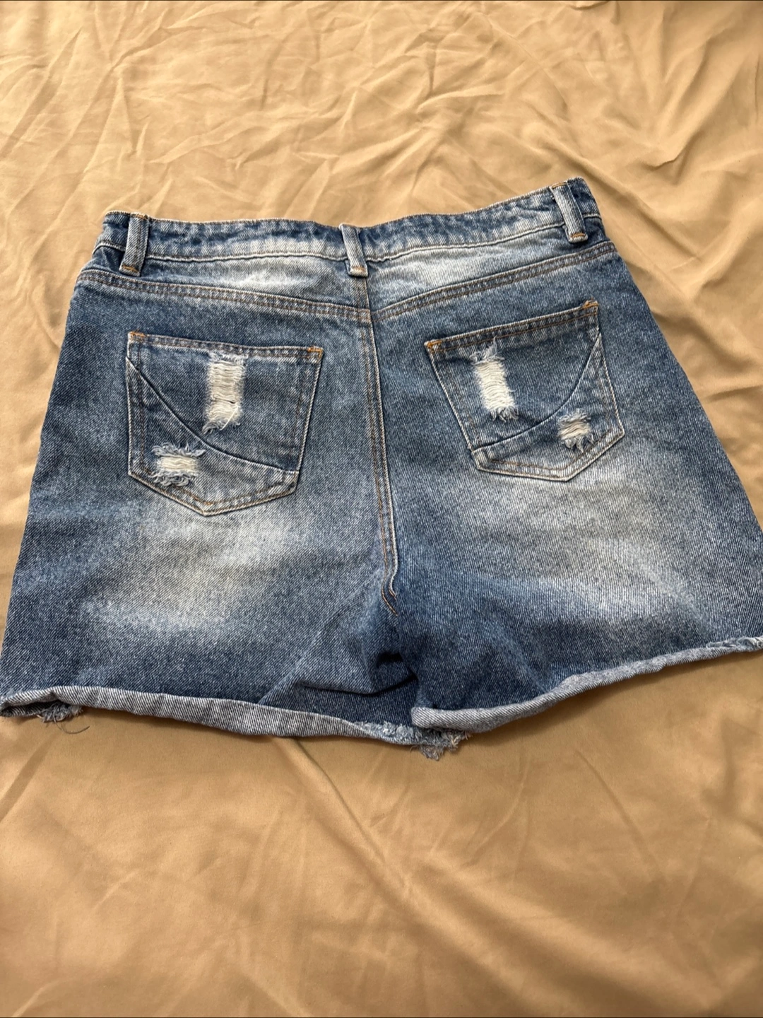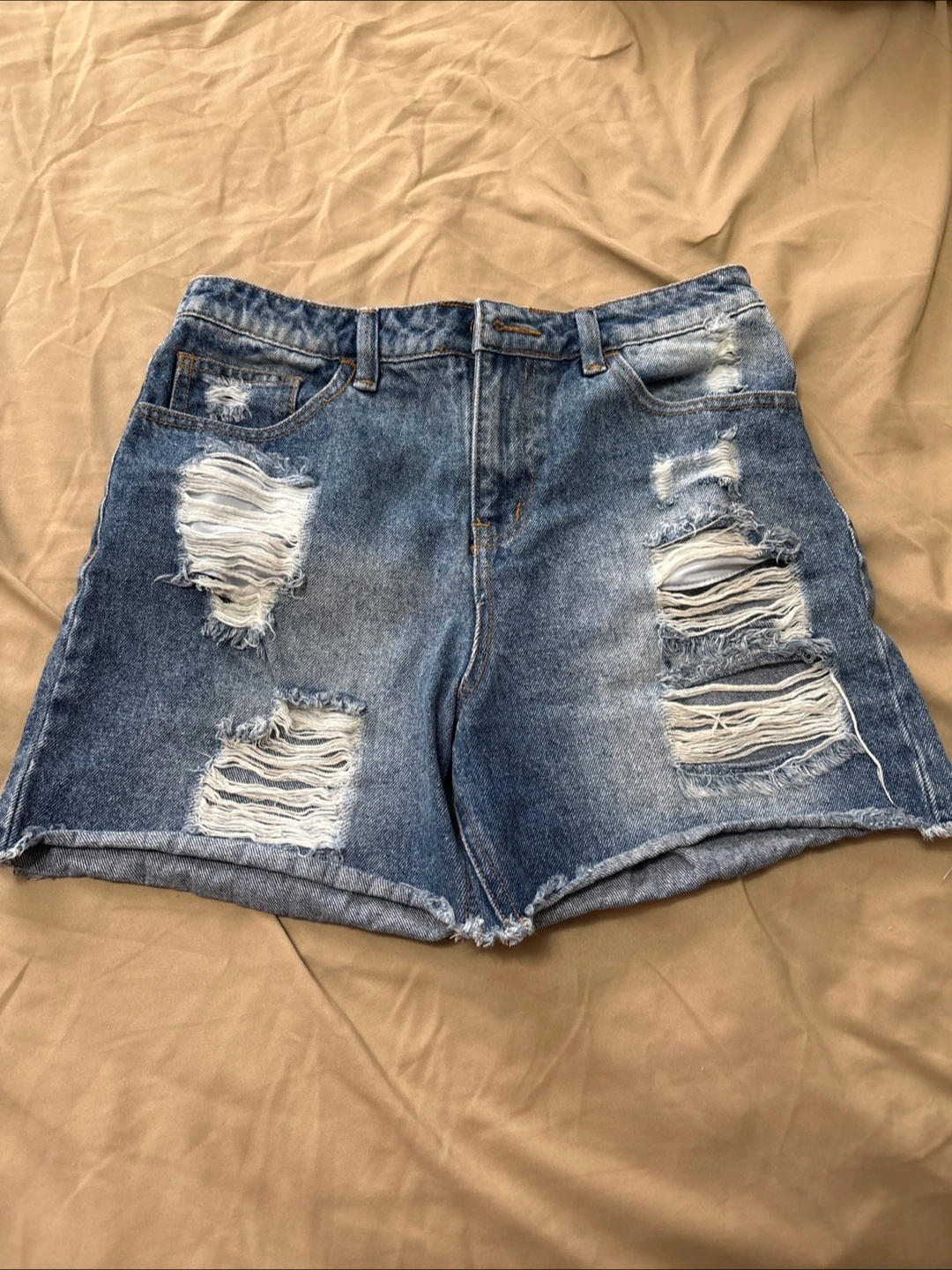 Selling a pair of Penshoppe Denim Lab distressed shorts in size small. They are in great condition and have a stylish, worn look. Perfect for casual wear!