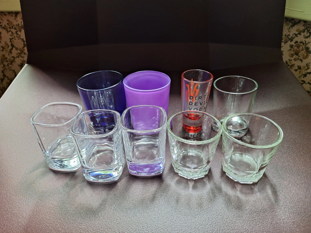 Selling a set of eight assorted shot glasses! There's a variety of shapes and sizes. Perfect for your home bar or parties