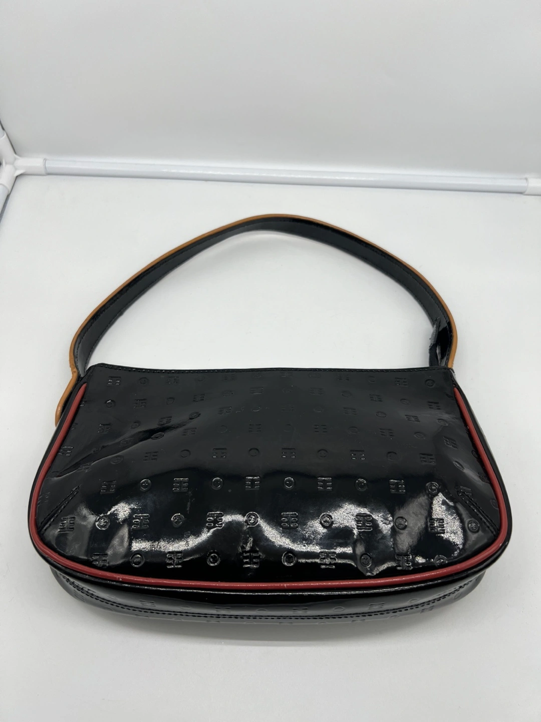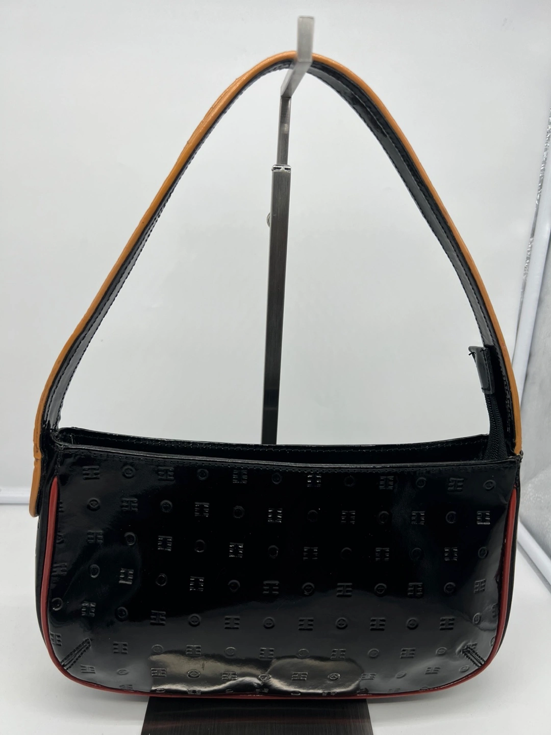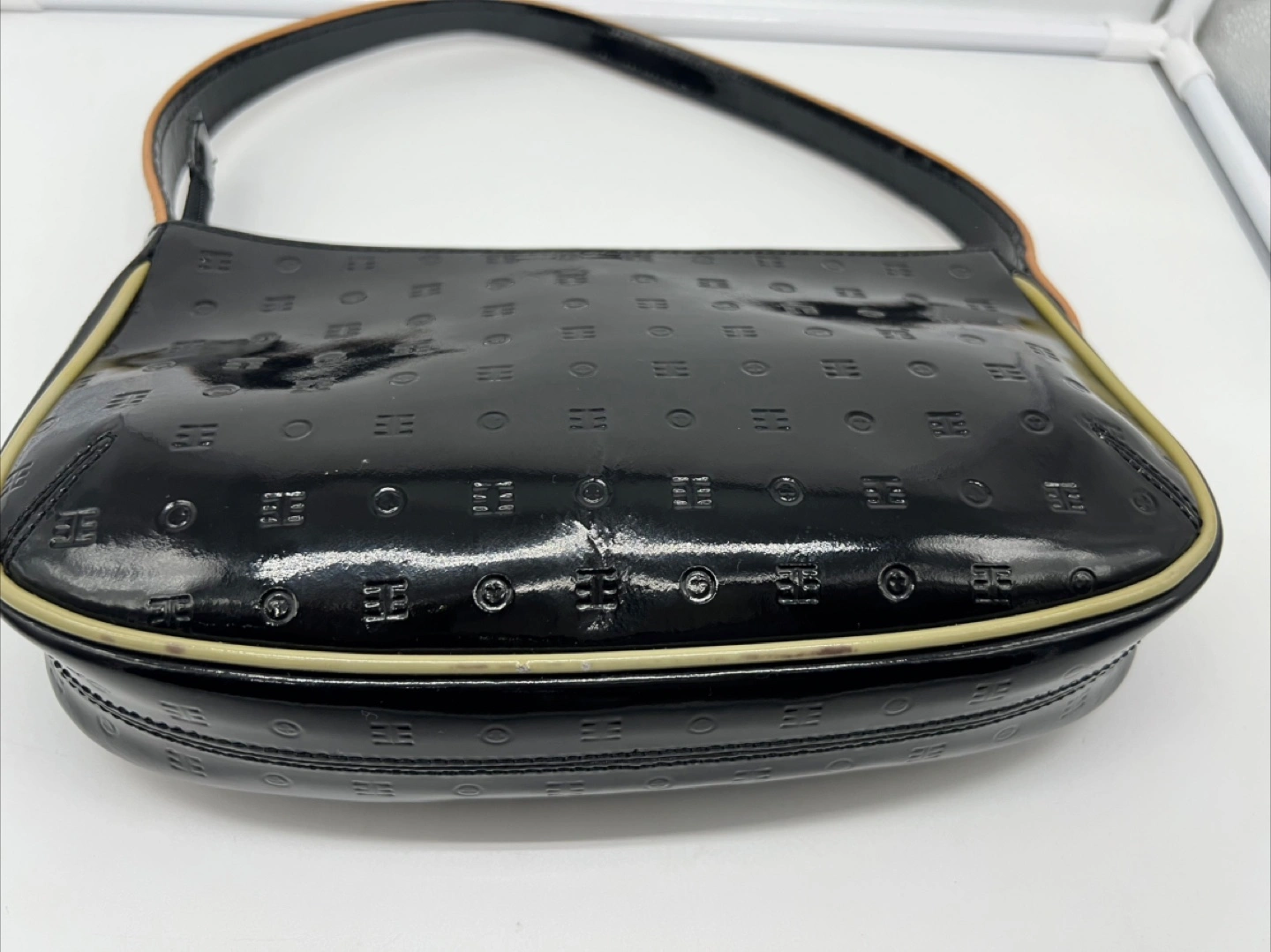 Guaranteed Authentic. Made in Italy. In good condition; faint marks on piping, faint cracks on shoulder strap.