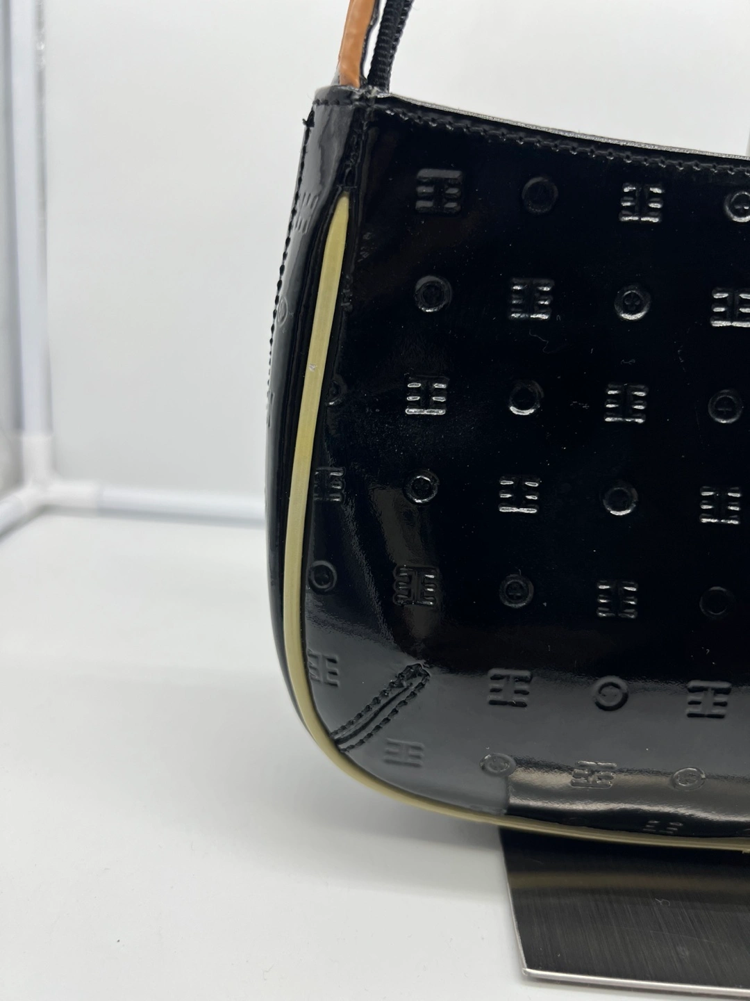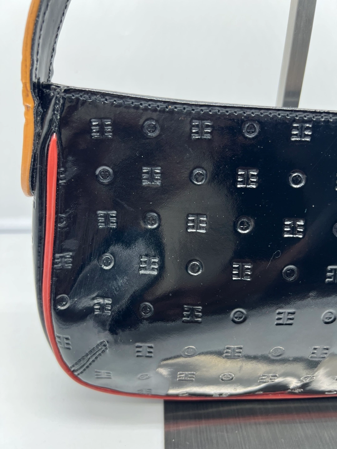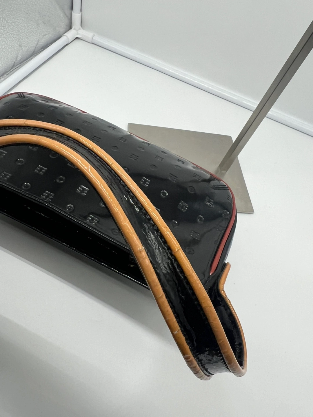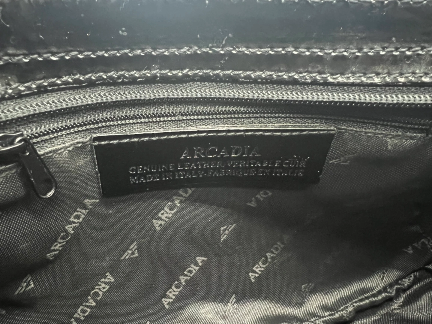 Guaranteed Authentic. Made in Italy. In good condition; faint marks on piping, faint cracks on shoulder strap.
