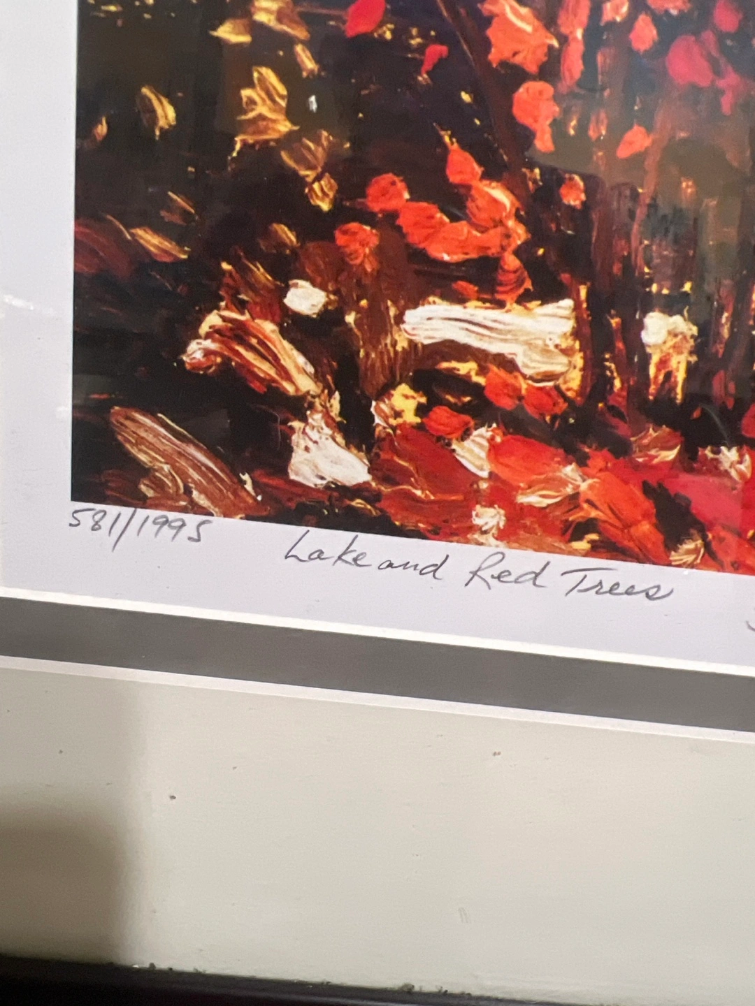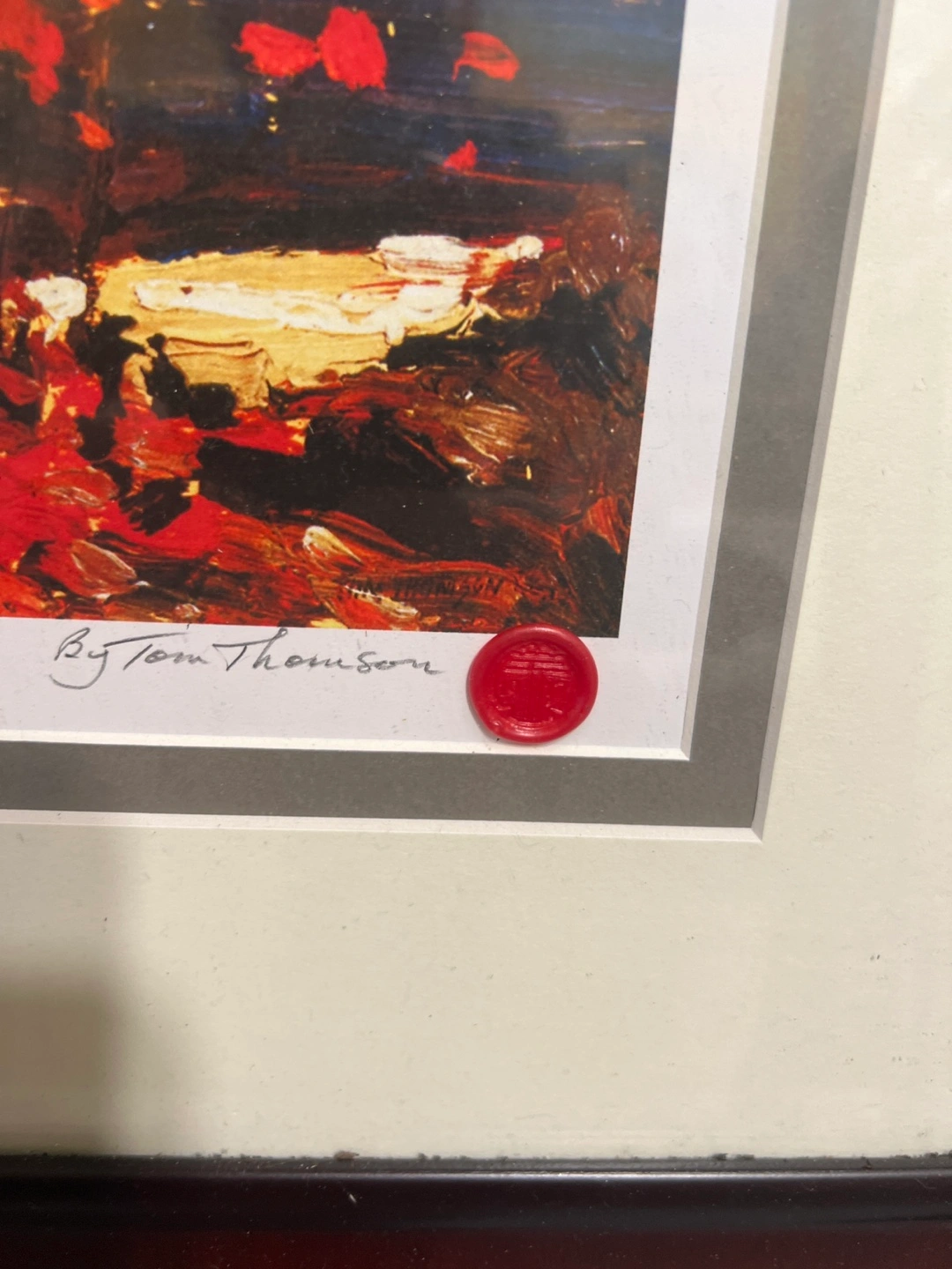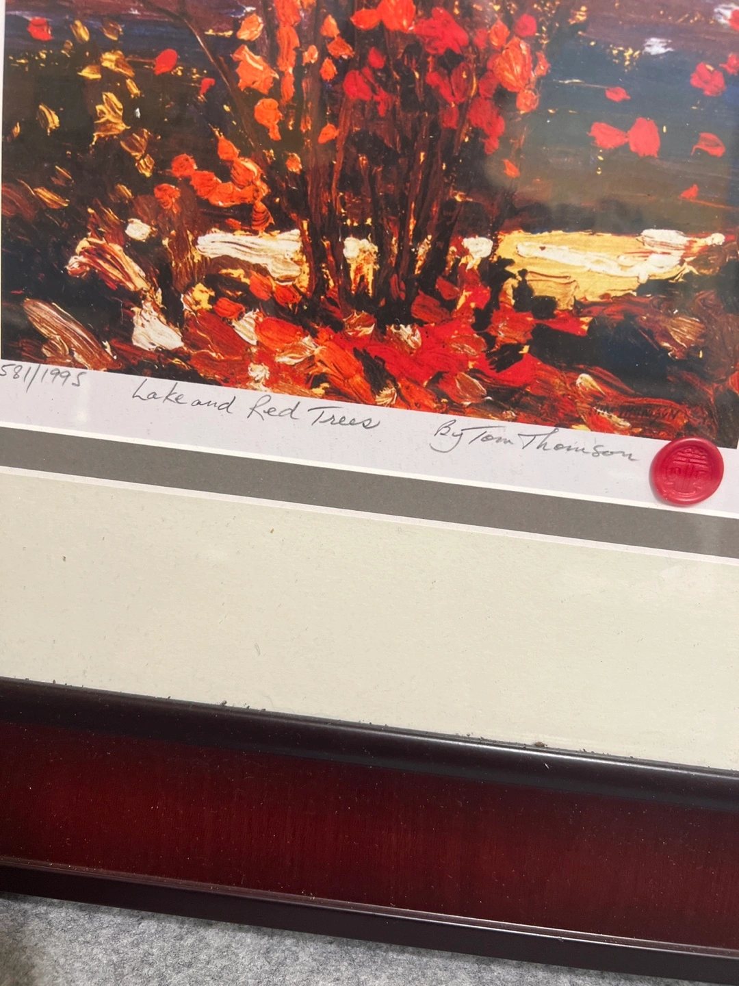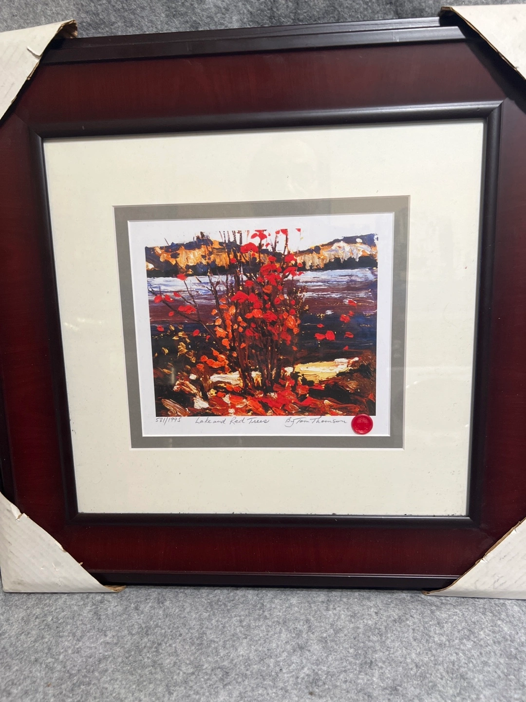 1000+Brand New. Selling a framed print of 'Lake and Red Trees' by Tom Thomson. It's numbered 581/1995 and has a red seal. The frame is a dark wood colour.