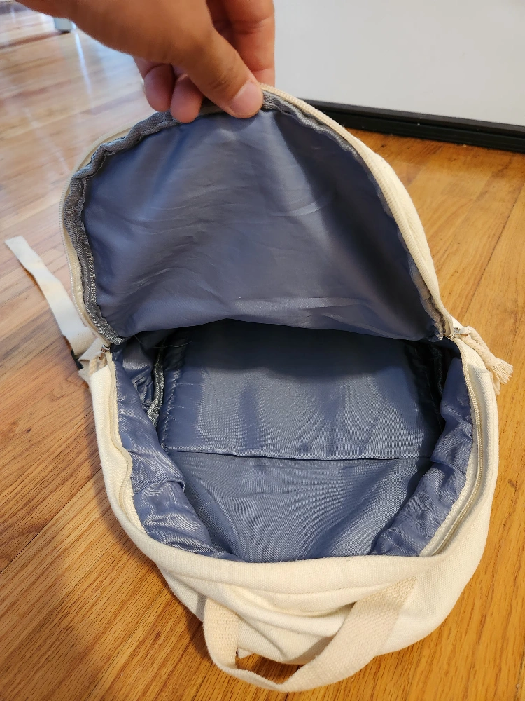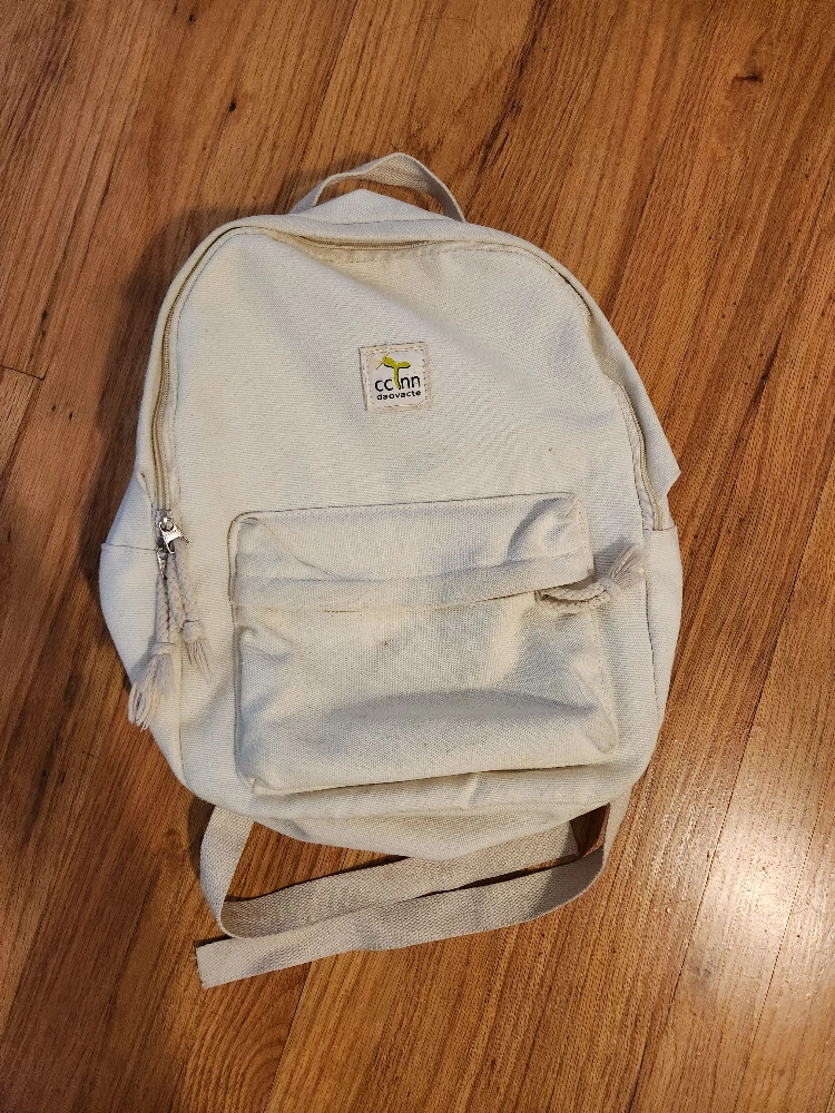 150Selling a cream-colored backpack from CC Inn Advocate! It's a great size for everyday use and has a convenient front pocket for easy access to your essentials. The interior is lined with a blue fabric, adding a nice touch. Perfect for school, work, or just carrying your things around town