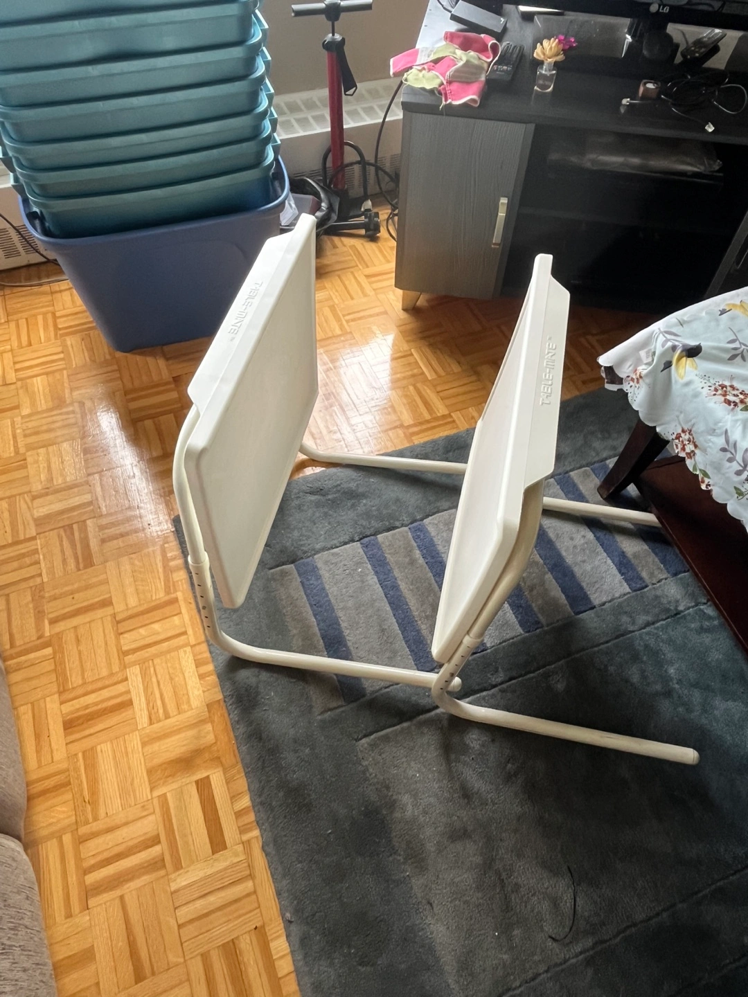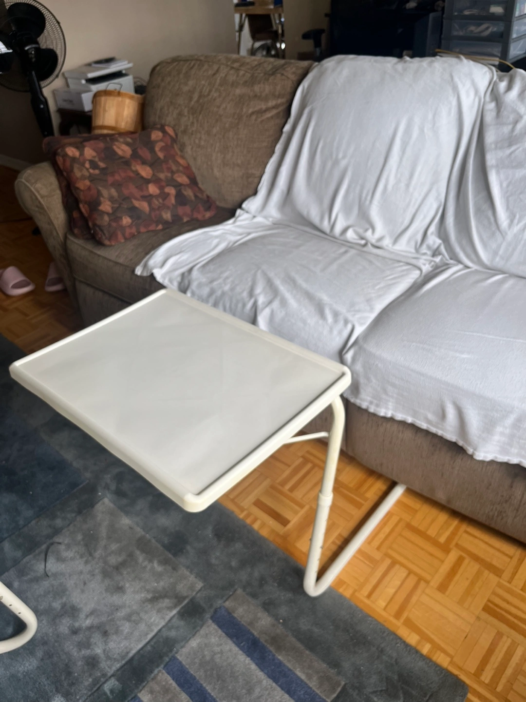 Selling Two Table-Mate adjustable table! It's super handy and slides right up to you. Perfect for snacks, working, or just relaxing on the couch. It's in great shape and ready for a new home!