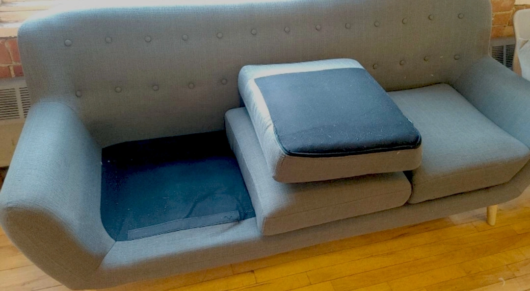 Mid century modern sofa with tufted back and individual bottom seats. Great sofa!