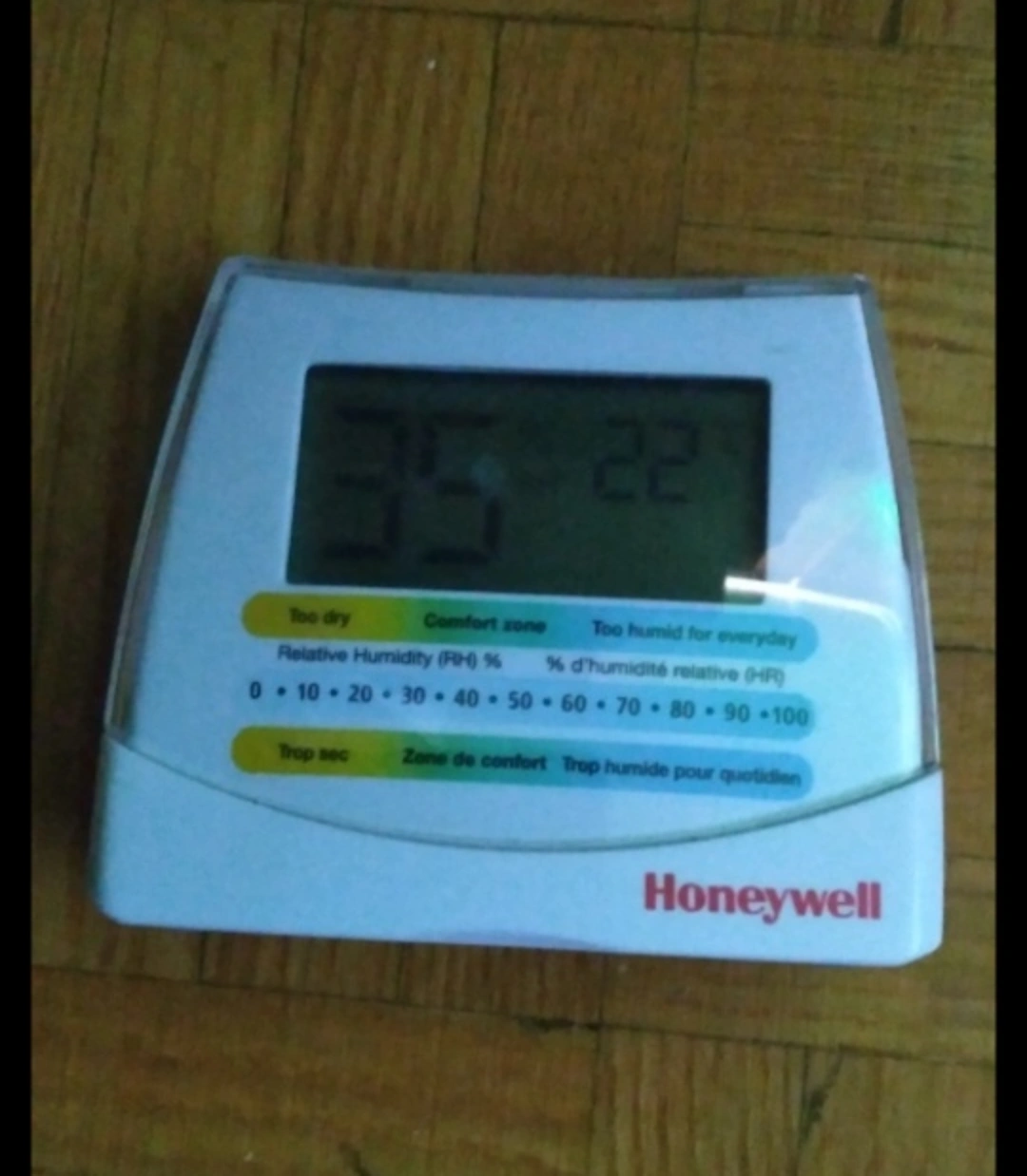 Giving away a Honeywell humidity monitor! It displays the relative humidity and indicates whether the environment is too dry, within the comfort zone, or too humid