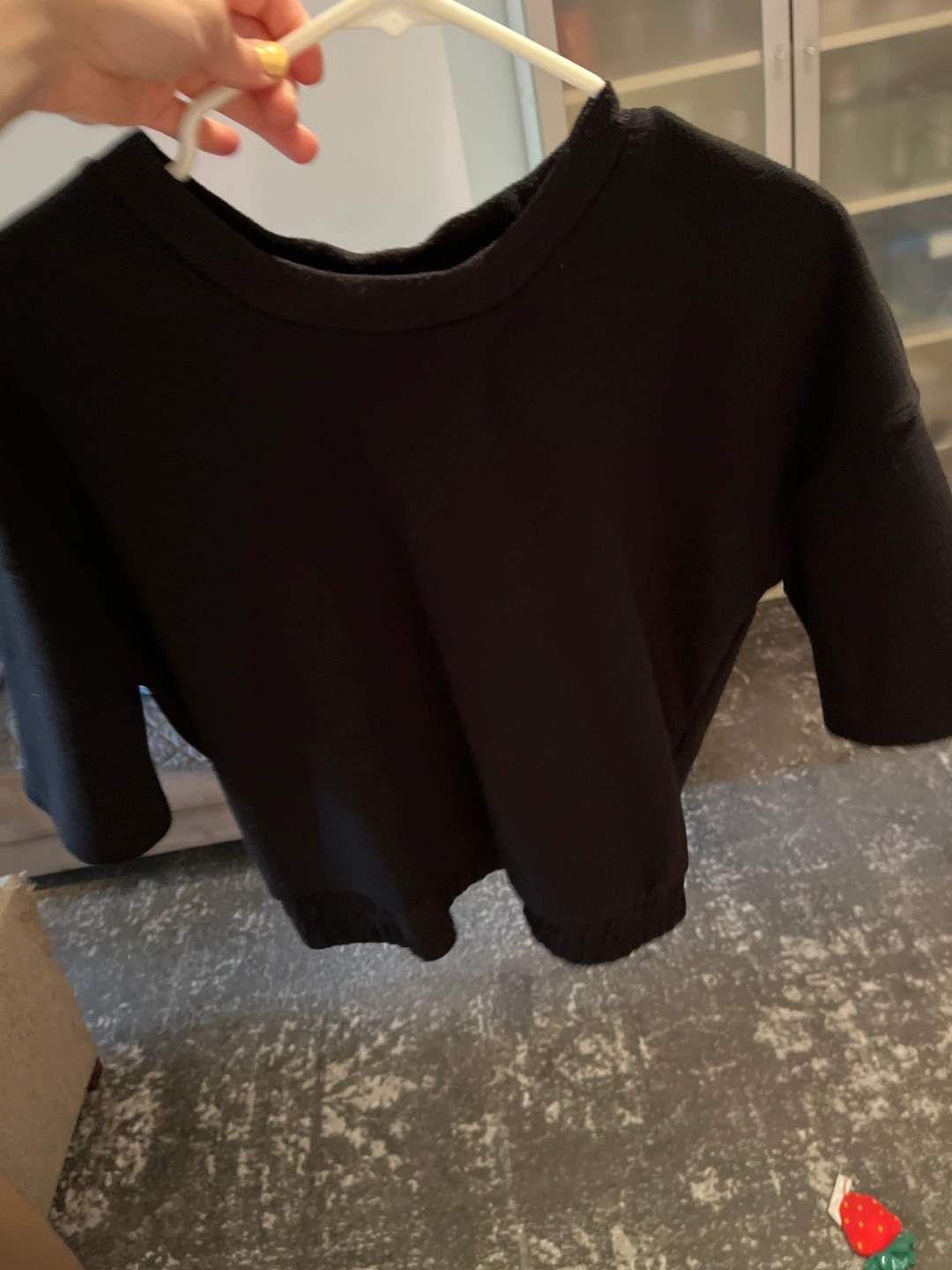 A simple black short sleeve top, perfect for everyday wear! It's in great condition and ready for a new home, sweatshirt feel .