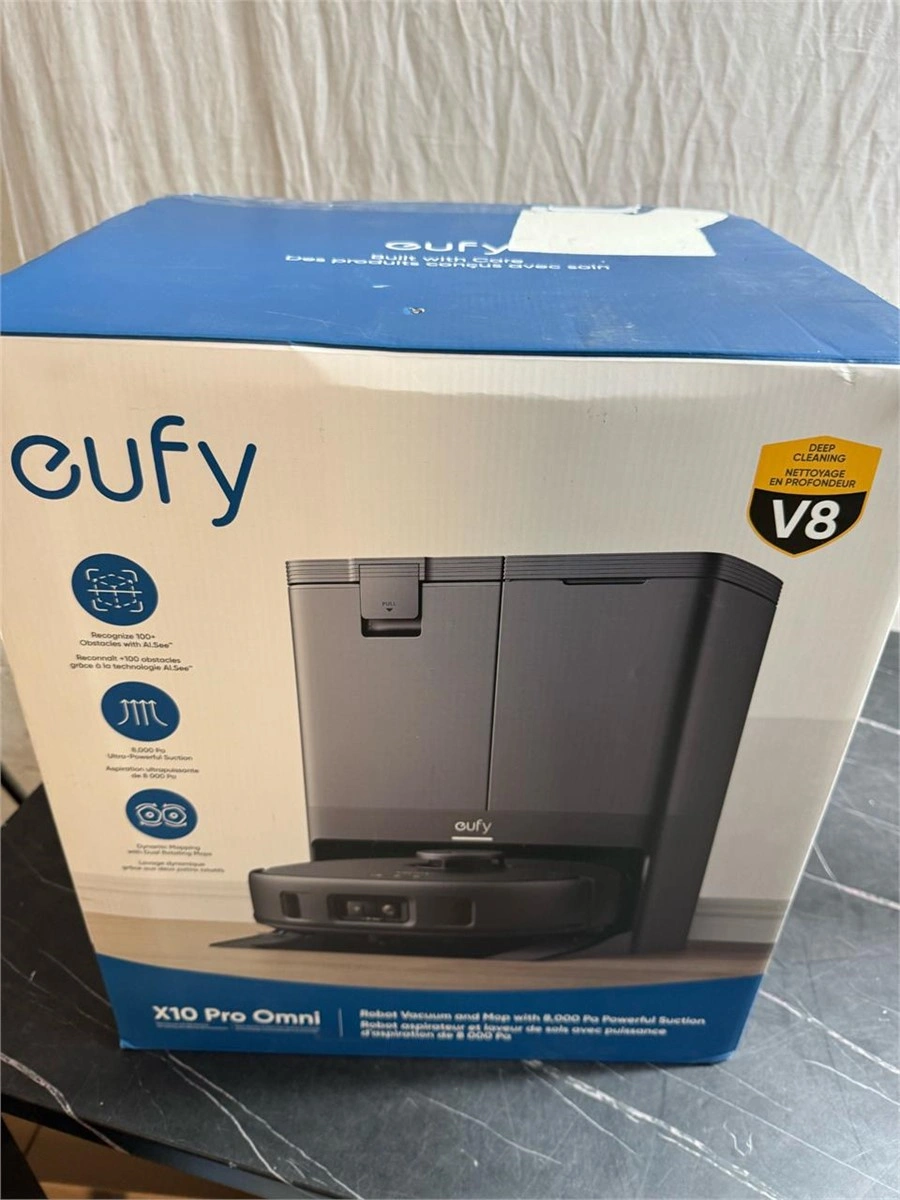 Brand new open box eufy X10 Pro Omni Robot Vacuum and Mop with 8,000 Pa Suction, Dual Mops with 12 mm Auto-Lift and Carpet Detection, AI Obstacle Avoidance, Auto Mop Washing & Drying, Self-Emptying, Self-Refilling.