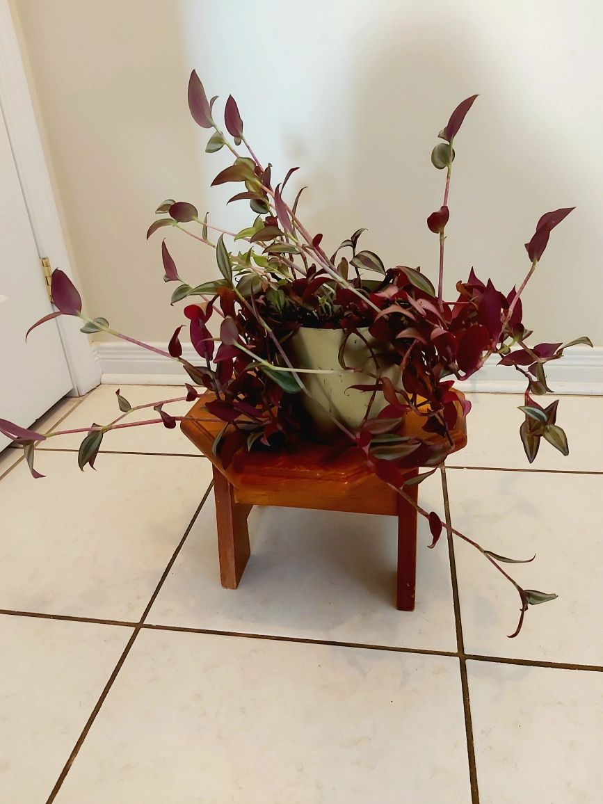 A vibrant Tradescantia Zebrina, known for its striking purple and silver-striped leaves. This fast-growing, trailing plant comes in a beautiful ceramic planter that complements any indoor space.