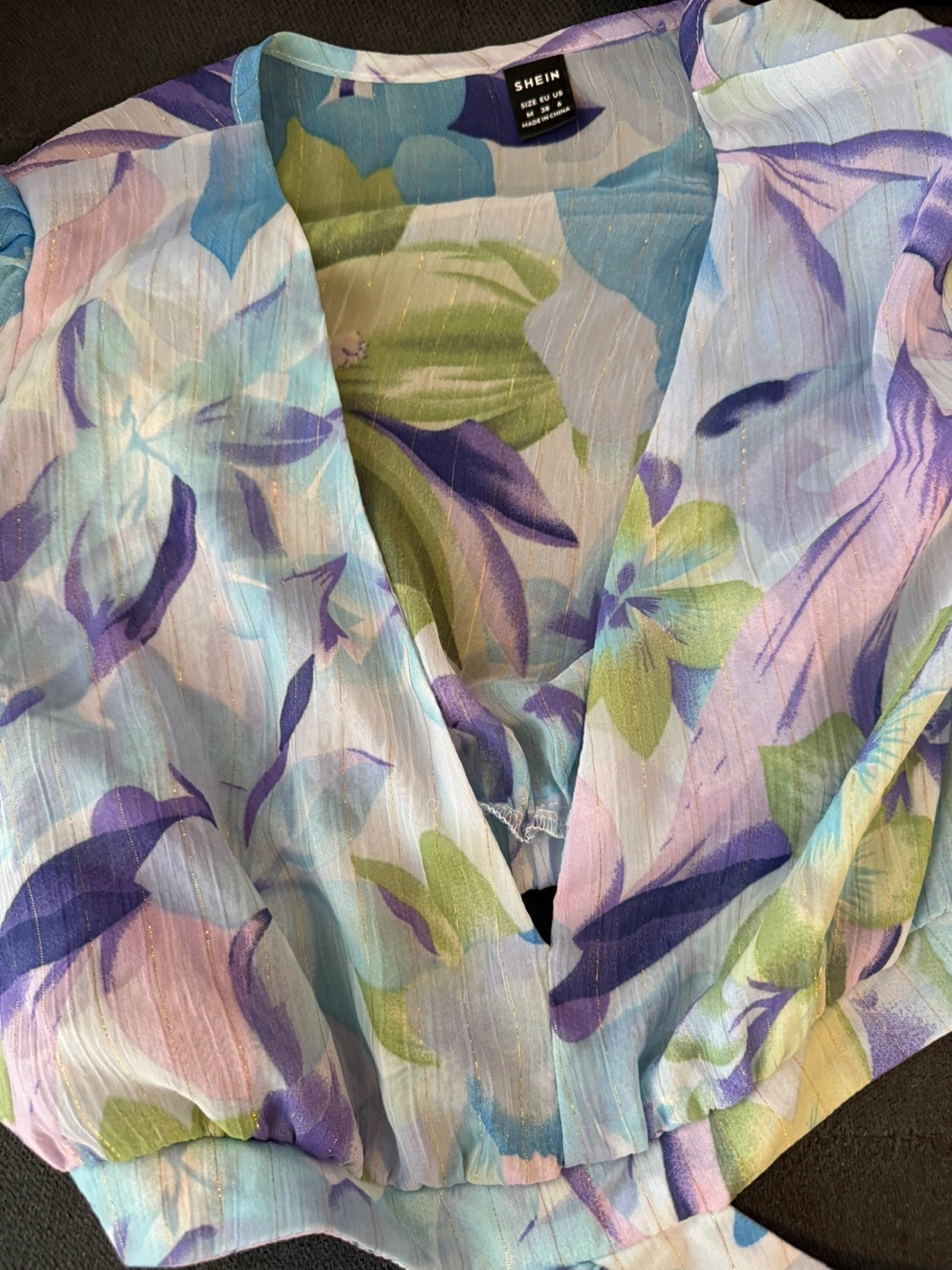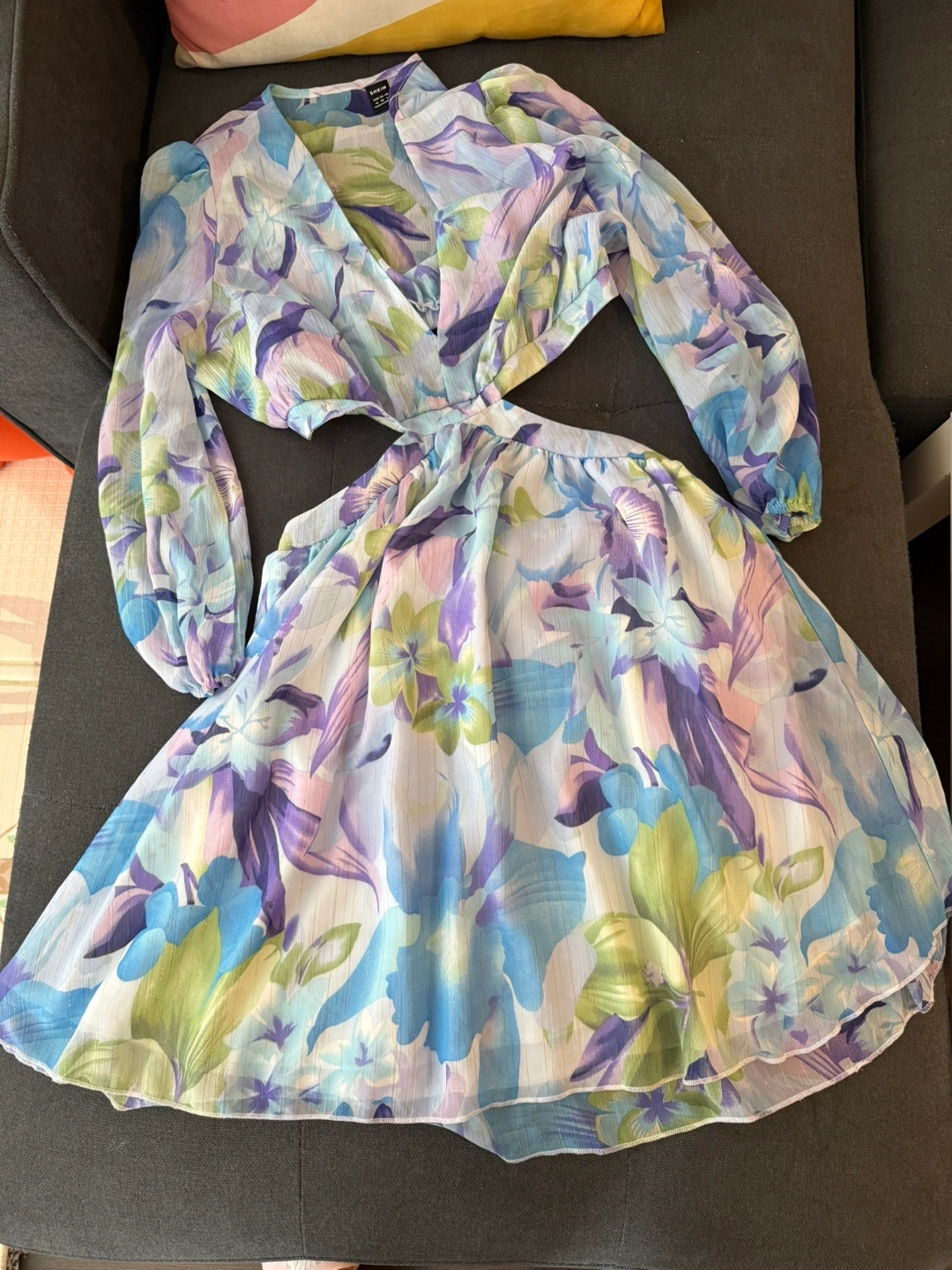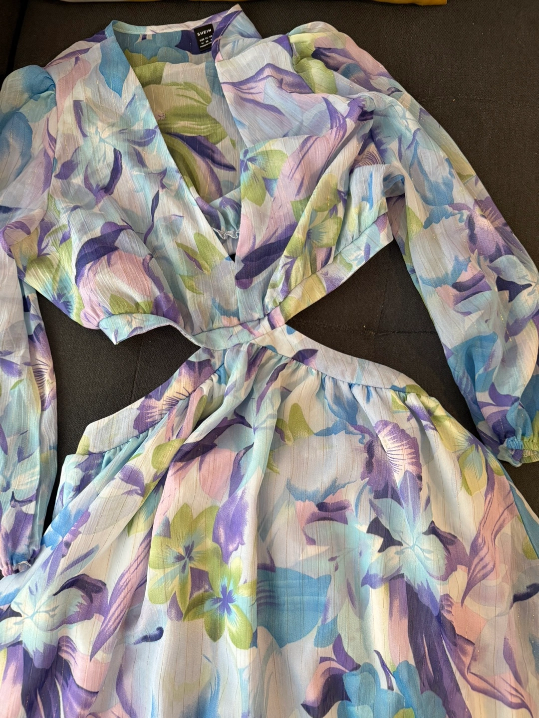 Selling a Shein floral print cut out dress in size medium. It's in excellent condition and comes with its original packaging.