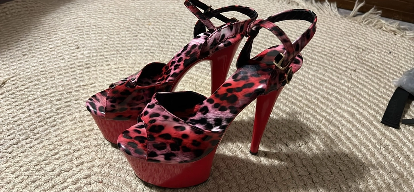 These platform heels feature a vibrant red and pink leopard print design. They are perfect for adding a bold statement to any outfit!