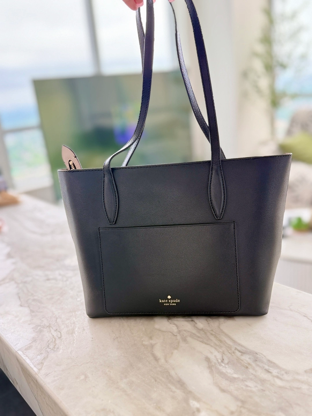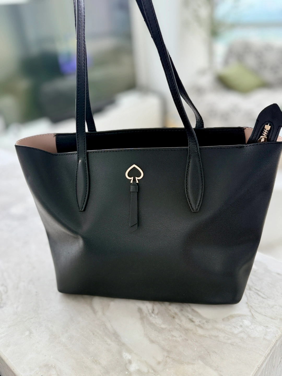 73Kate Spade Small Tote – Black, Gently Used 📍 Park Lawn & Lake Shore (Etobicoke) | Pickup Only Selling a gently used Kate Spade Small Tote in classic black. Clean, structured, and perfect for everyday use—fits all your essentials without being bulky. Details: • Black leather with gold-tone hardware • Zip-top closure, dual handles • Interior slip pocket • Gently used, no tags