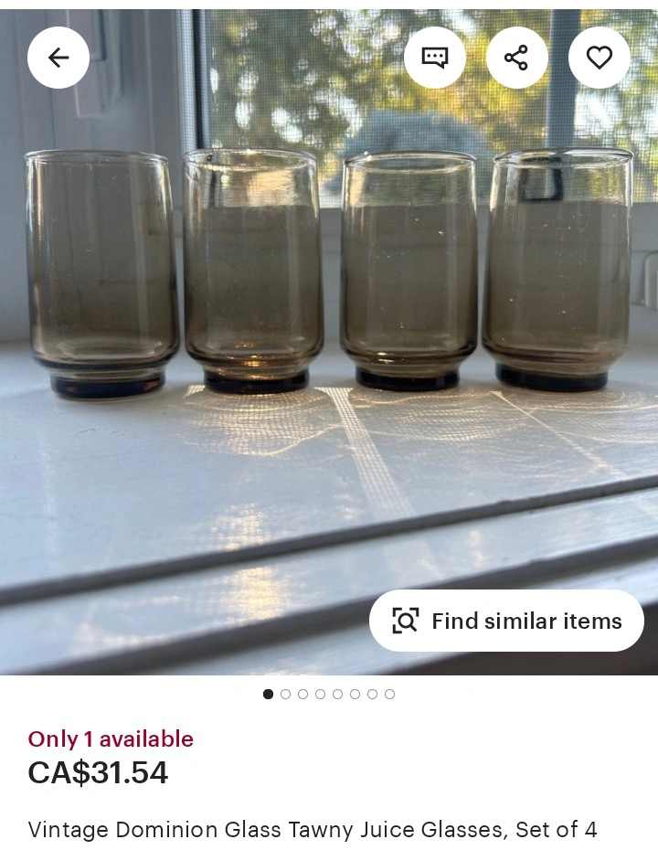 Set of 8 Vintage Dominion Glass Tawny Juice Glasses