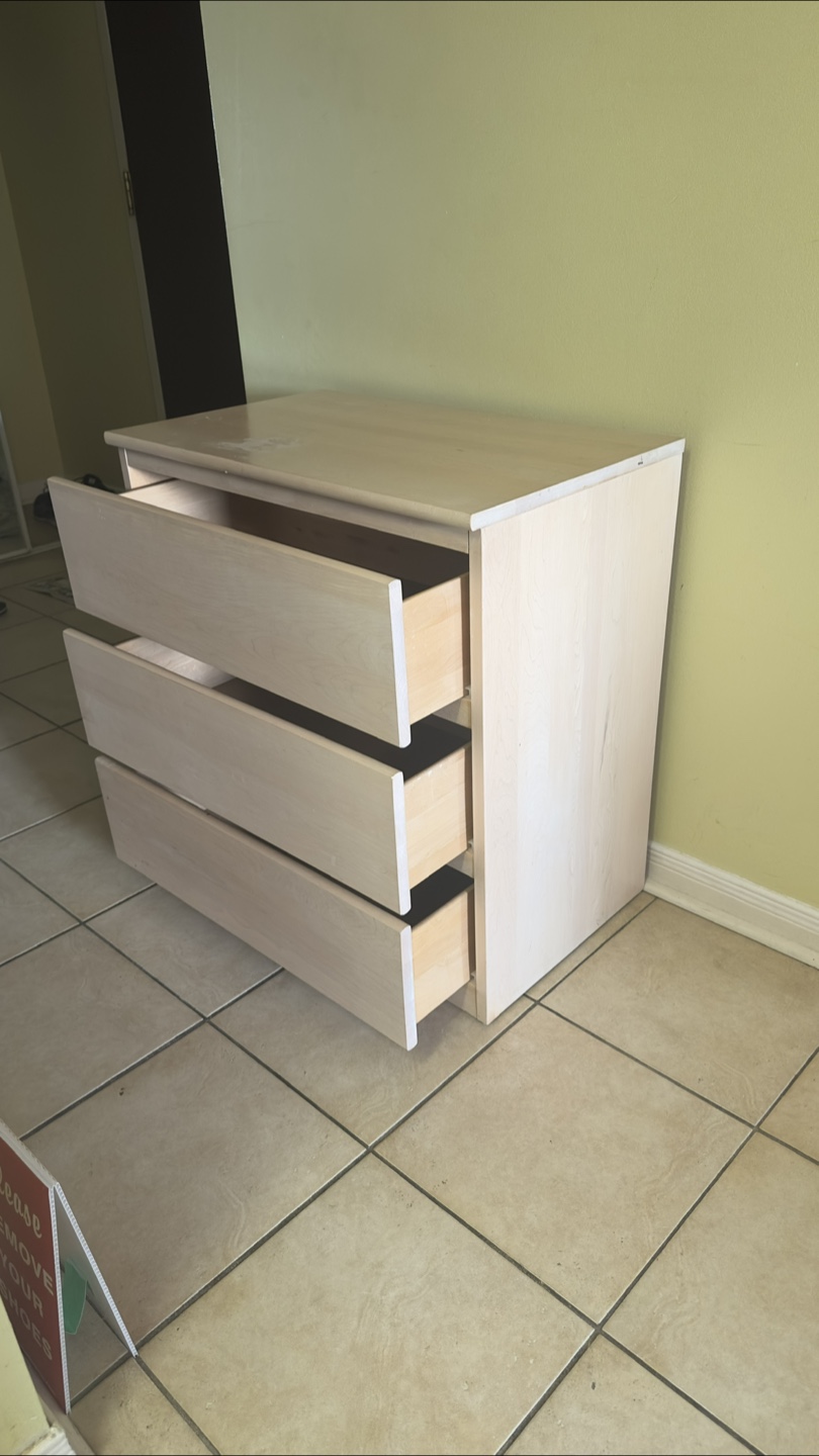 Buy & SellSolid wood 3-Drawer DresserSolid wood 3-Drawer Dresser$44Selling a solid wood 3-drawer dresser. It's in good condition and has a clean, simple design that fits well in any room. Perfect for extra storage!Dimensions28*29*18 inchWHERE TO MEET22 olive avenueView MapSELLERverifiedKmFinch15211 reviews2 chats·2 favorites·56 viewsSEND CHAT TO SELLERHi Km! I’m interested in your listing.Hi Km! I’m interested in your listing.Get the Karrot app to chatSign In to chat