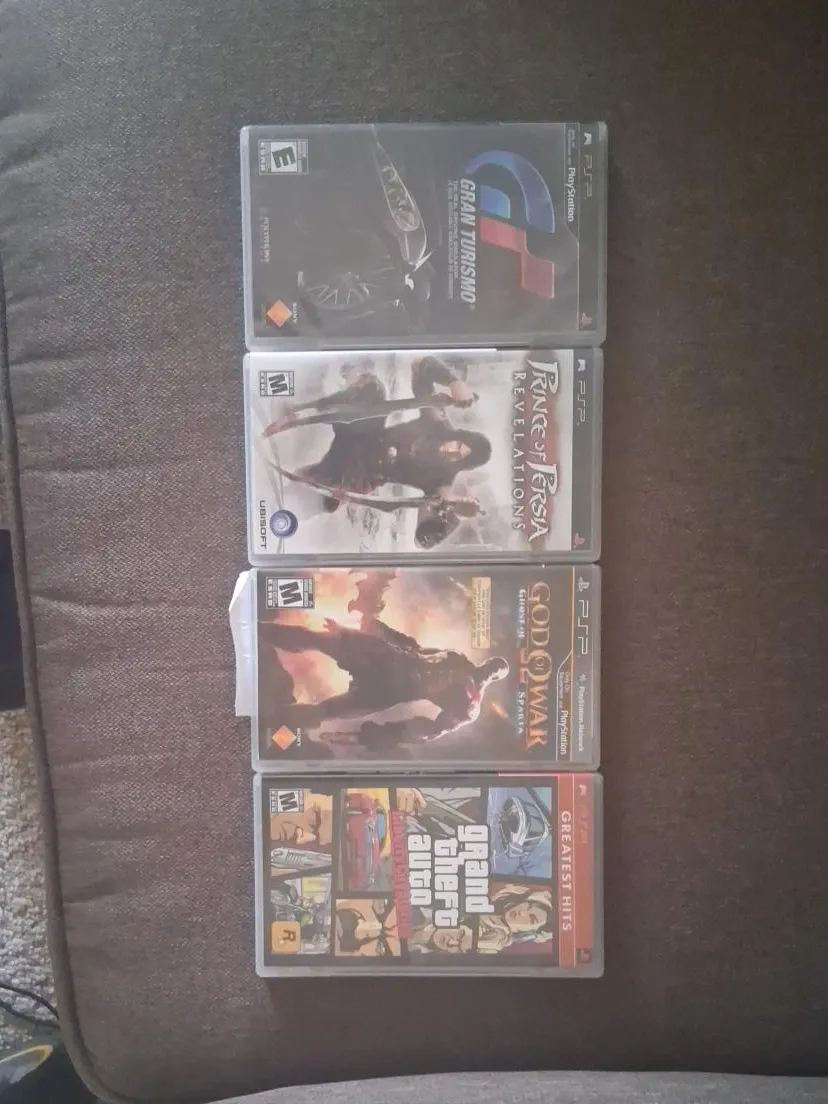 Selling a collection of PSP games! Includes Gran Turismo, Prince of Persia Revelations, God of War Ghost of Sparta, and Grand Theft Auto Greatest Hits