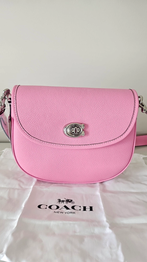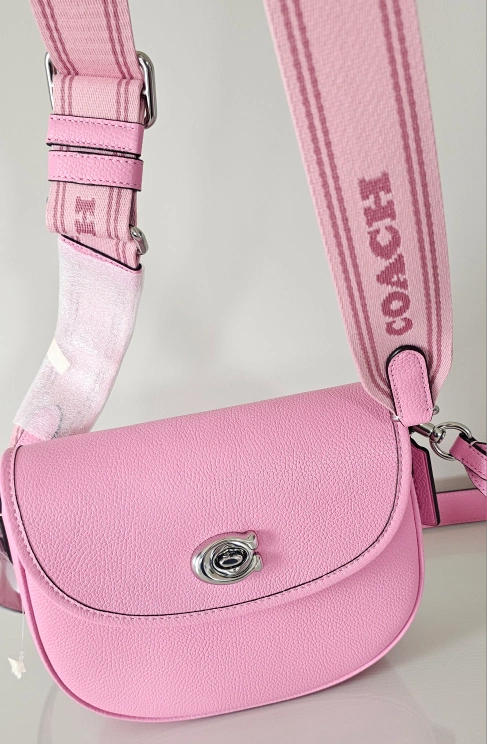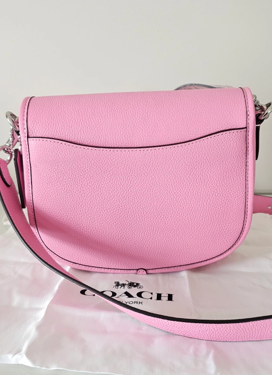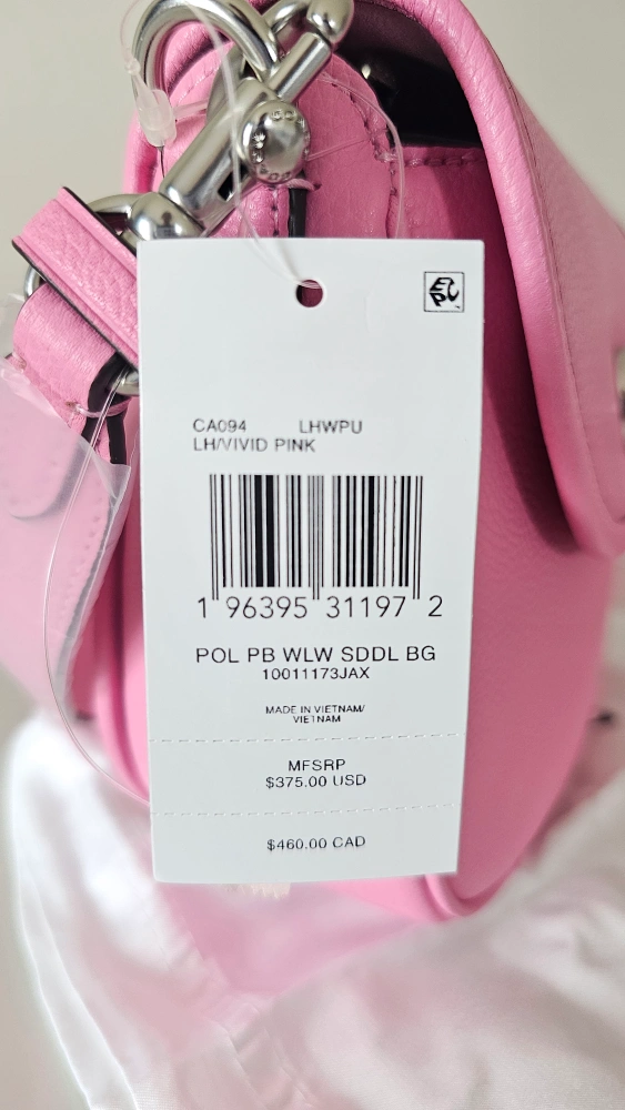 This Coach crossbody bag color is Vivid Pink. It comes with 2 straps and is in brand new condition. The original price was $460 CAD.
