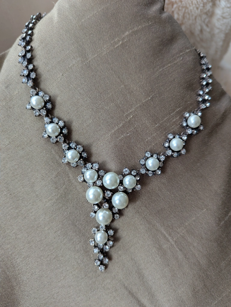 Beautiful necklace featuring faux pearls and sparkling rhinestones! It's in great condition and ready to add a touch of elegance to any outfit