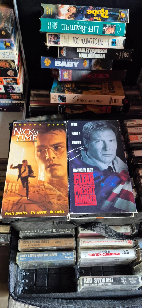 Selling a collection of VHS tapes. Titles include: - Nick of Time - Clear and Present Danger - Raw Deal - Of Mice and Men - The War of the Roses - Baby - 8MM (Eight Millimeter) - A Perfect World - Harley Davidson and the Marlboro Man - Too Young to Die - Life & Beautiful - Harley Davidson The Marlboro Man - The War on the Road and more! $1.00 each