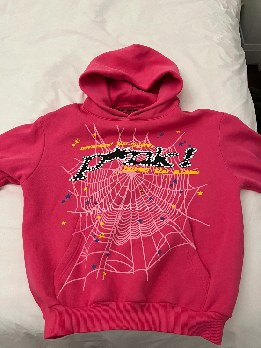 Selling a SP5DER hoodie in pink! It's a size small. In pristine condition (only worn once).