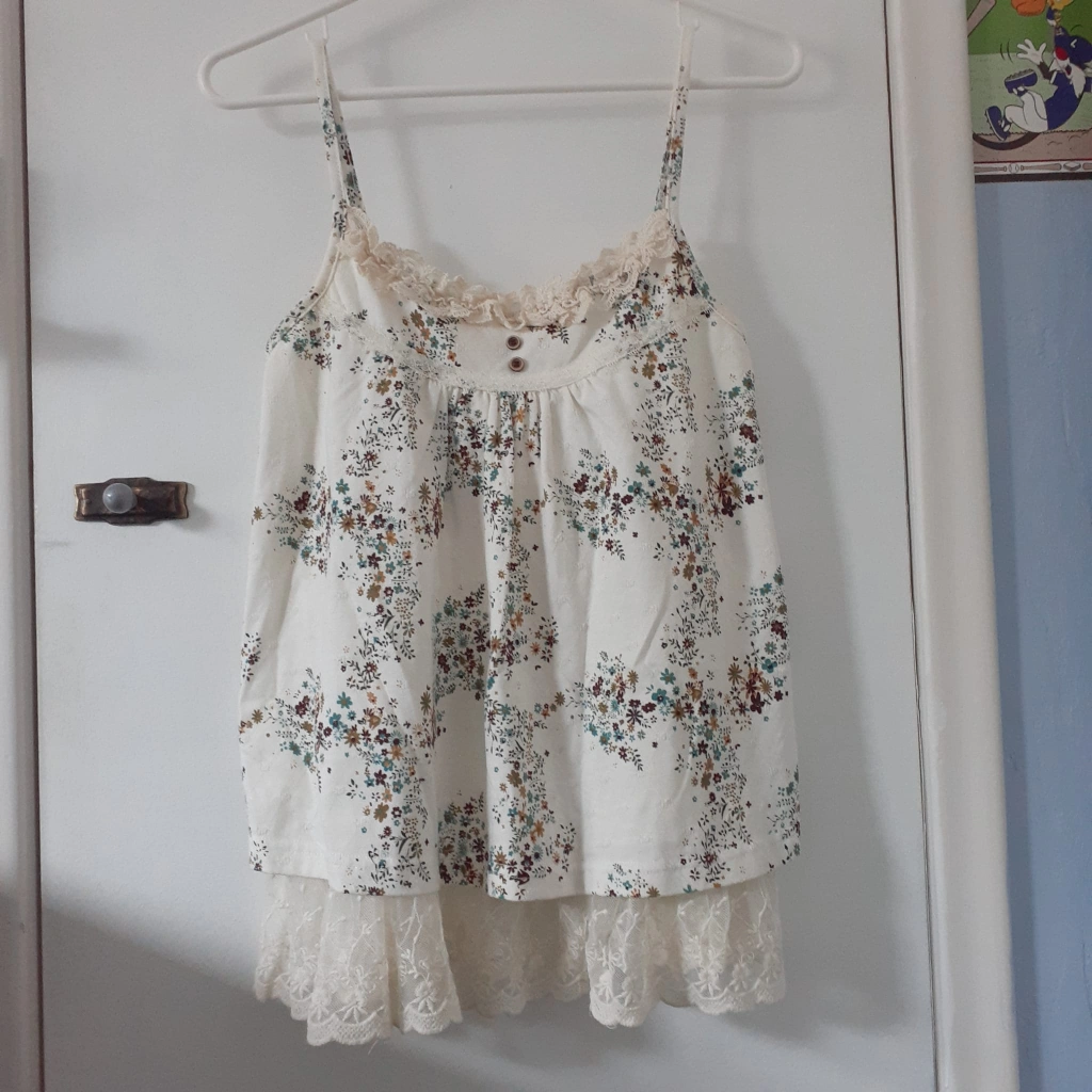 269Selling a cute floral tank top from Renee! It has a lovely lace trim and a delicate floral pattern, perfect for adding a touch of charm to any outfit.