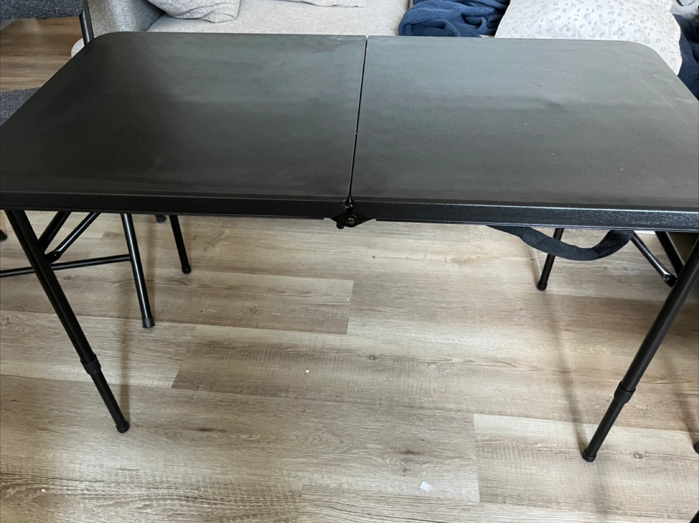 Selling a handy folding table and chair set! Perfect for camping, picnics, or extra seating at home. The set is in great condition and ready for its next adventure. Easy to fold and store, making it super convenient for small spaces