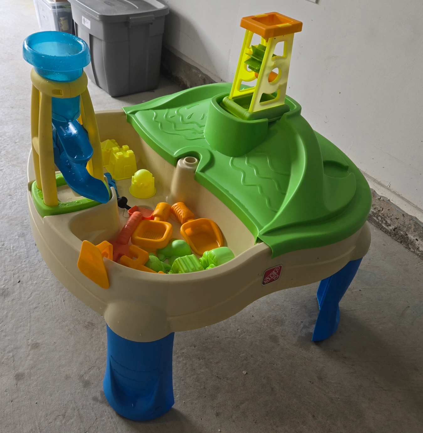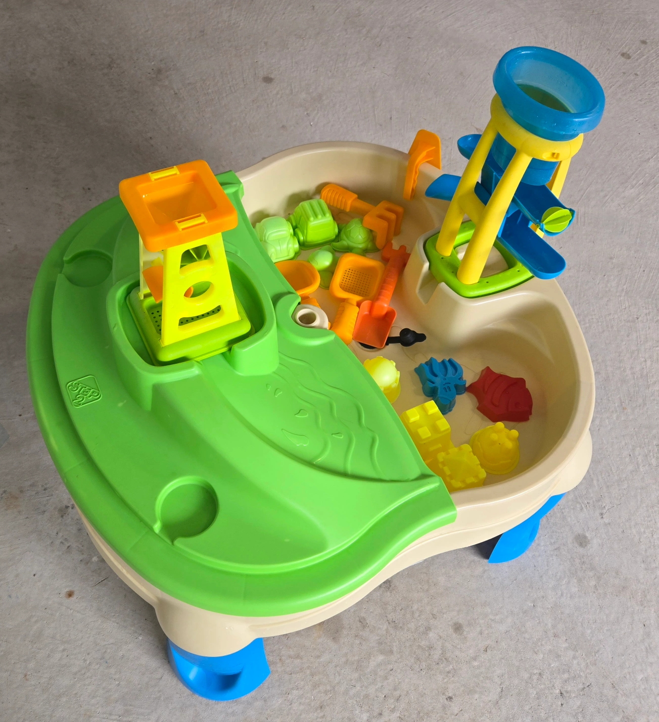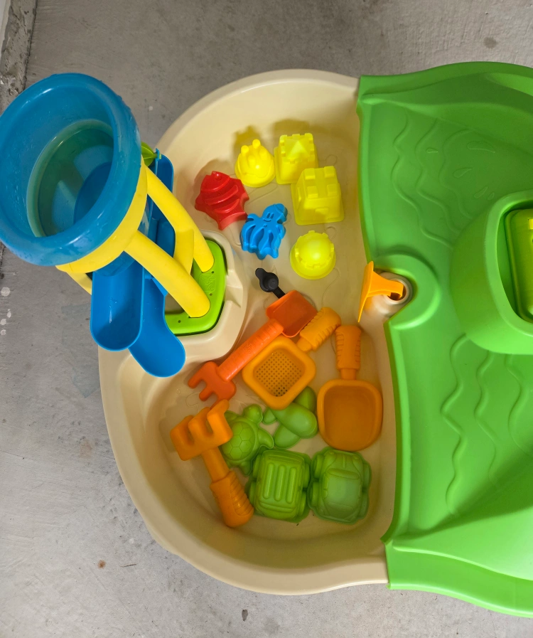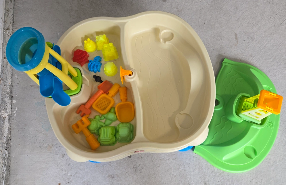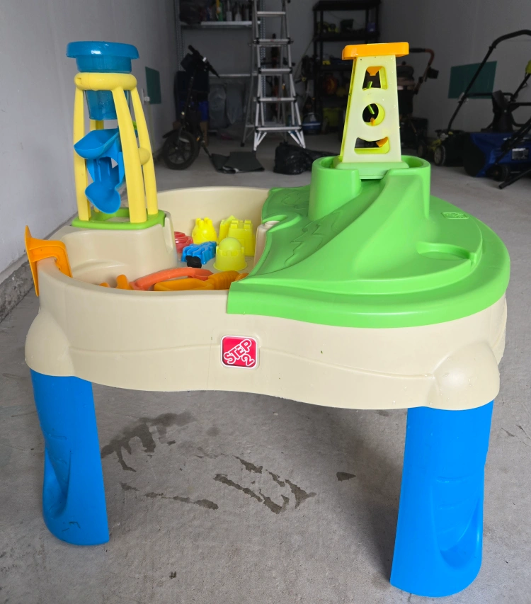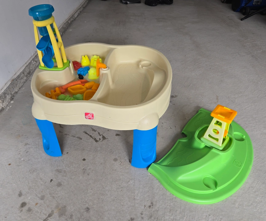 Pre-owned Step 2 Splash and Scoop Bay Water + Sand Table. A cover that fits either side, separating the sand from the water and can be used separately or together for added play.