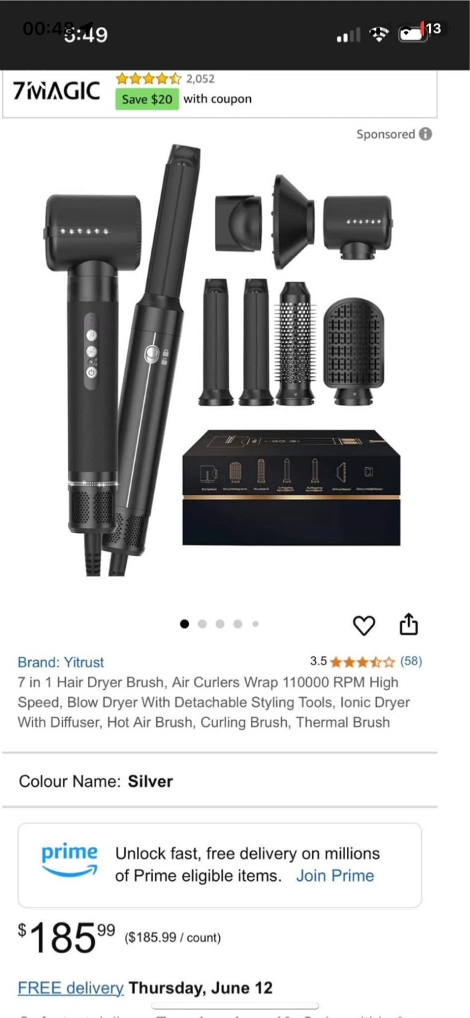 I'm selling a brand new Yitrust 7 in 1 Hair Dryer Brush! It's an air curler wrap with a high-speed blow dryer and detachable styling tools. It comes with a diffuser, hot air brush, curling brush, and thermal brush. It was originally bought for $185.99, and the box is included!
