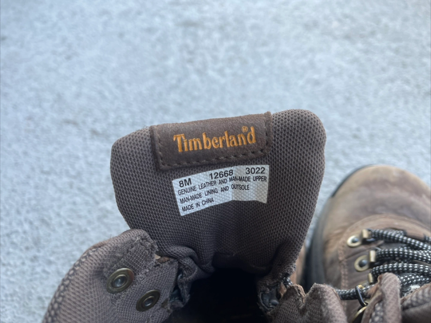 Selling a pair of Timberland hiking boots in size 8M. They're made with genuine leather and man-made materials for the lining and outsole. Perfect for hitting the trails!