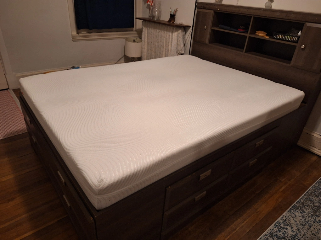 Selling a Structube Nuaj 8 queen size mattress 200cm x 153cm x 20cm in excellent condition. High quality and super clean without any stain. Mattress cover has a zipper which means removable and washable. Original cost over $500 when new. This mattress is slightly firmer than normal mattresses. It's in very good shape.