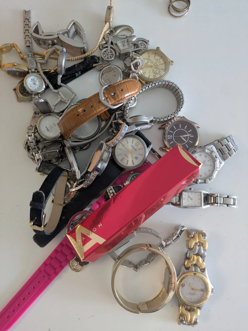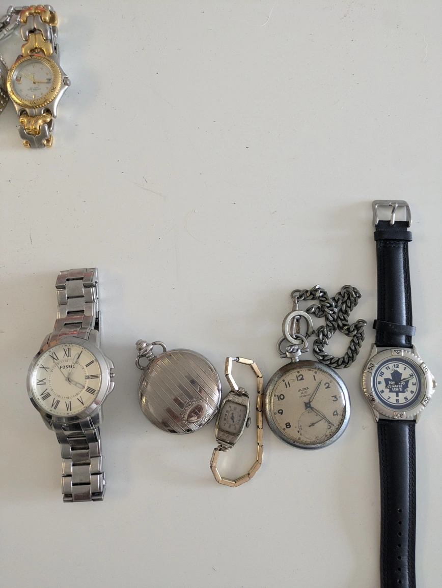Selling a mixed lot of used watches! There's a variety of styles and brands in here. Great for someone who likes to collect or repair watches. Please see photos for details on condition and styles