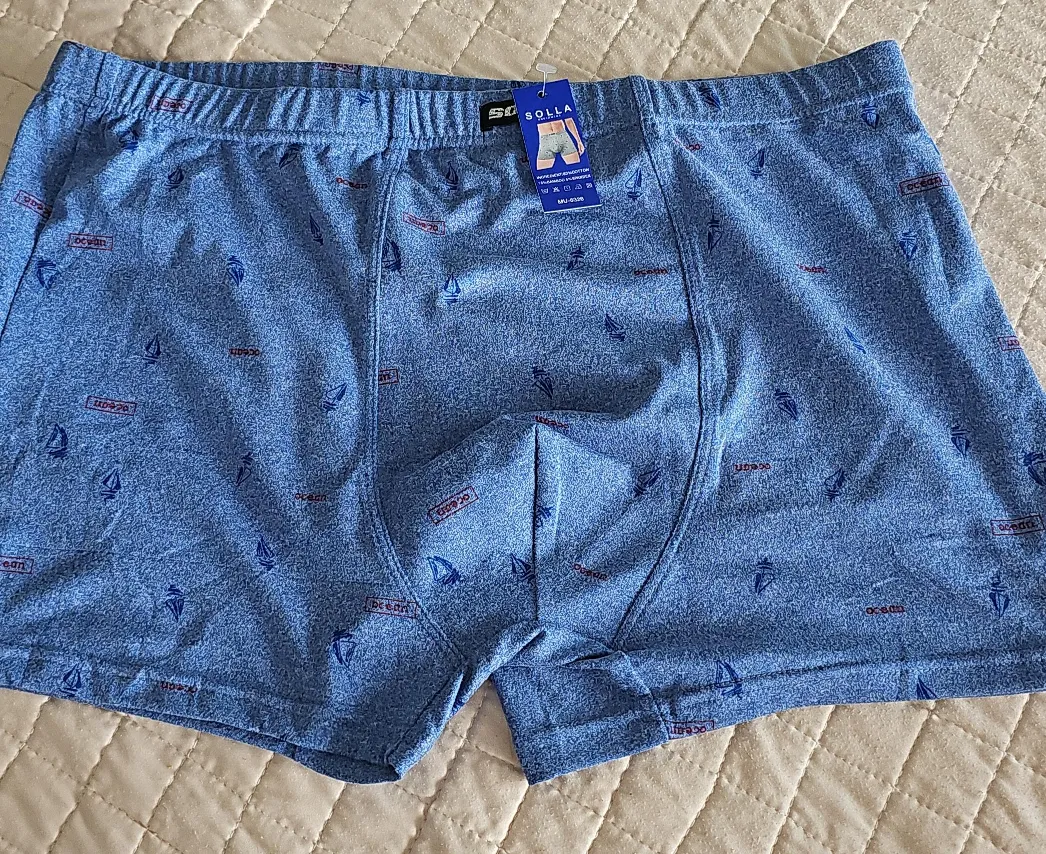 Selling a pair of SOLLA men's boxer briefs. They feature a light blue colour with a sailboat pattern. Perfect for everyday wear!