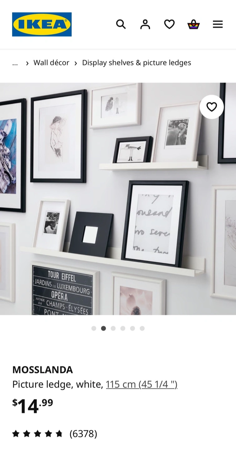 Selling a pair of IKEA Mosslanda picture ledges. They are 115 cm (45 1/4") long. Great for displaying photos or artwork in your home!