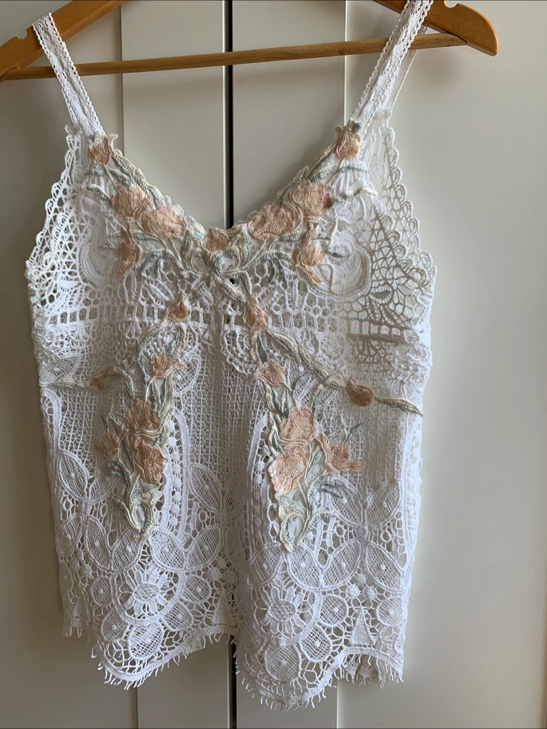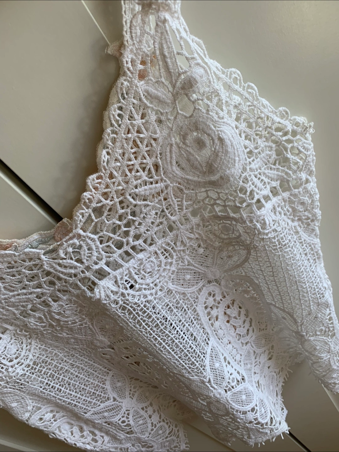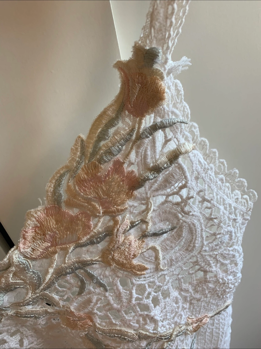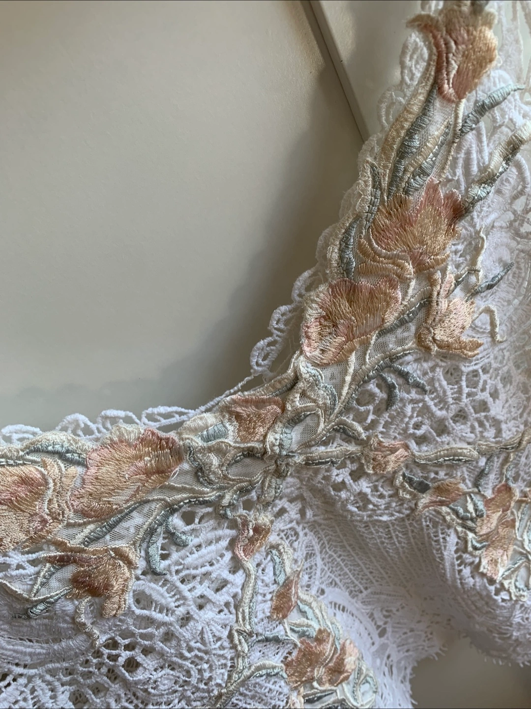 •Dreamy lace with hand sewn floral embroidery details , soft, romantic, and effortlessly feminine. Festival ready flair!
