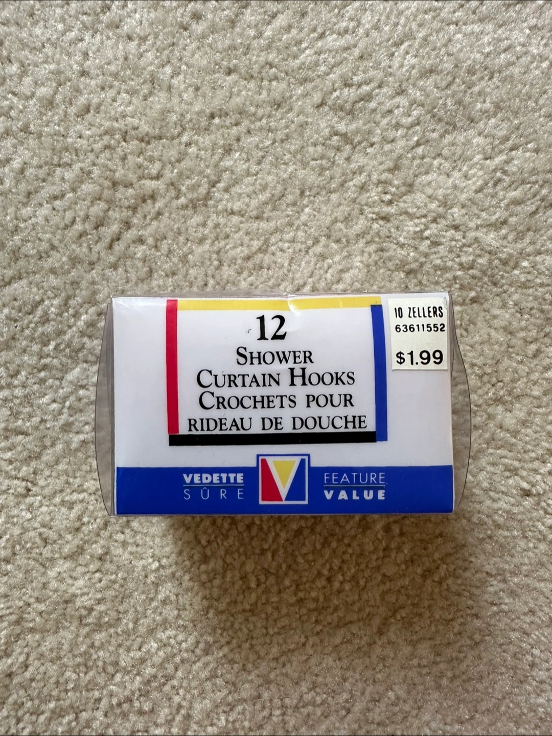1 for $3 2 for $5 Selling a brand new pack of 12 shower curtain hooks! These are Vedette Sure Feature Value hooks still in their original packaging