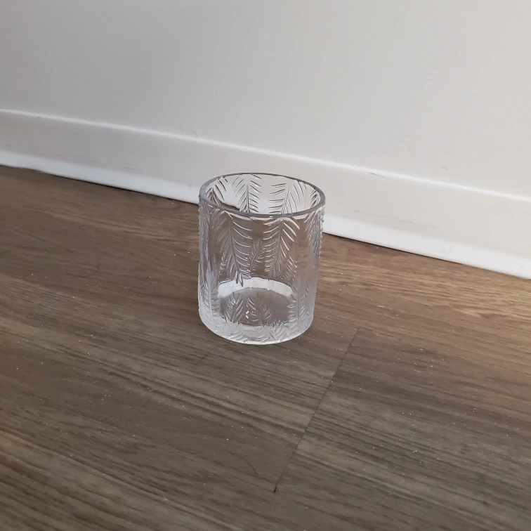 Clear Glass Cup with Leaf Design