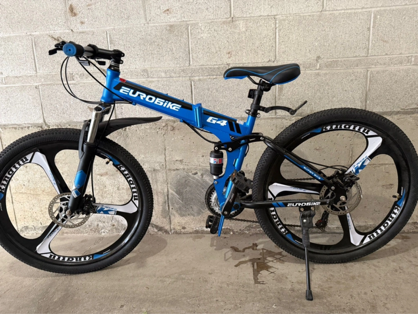 Selling a Eurobike G4 folding mountain bike in blue! It's in great shape and ready for some adventures. This bike is perfect for those who need a portable and easy-to-store option. The folding feature makes it convenient for taking it on trips or storing in small spaces. It's a fun and practical ride!