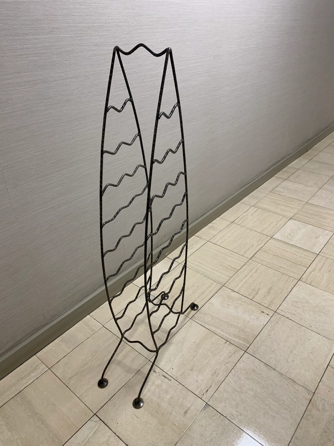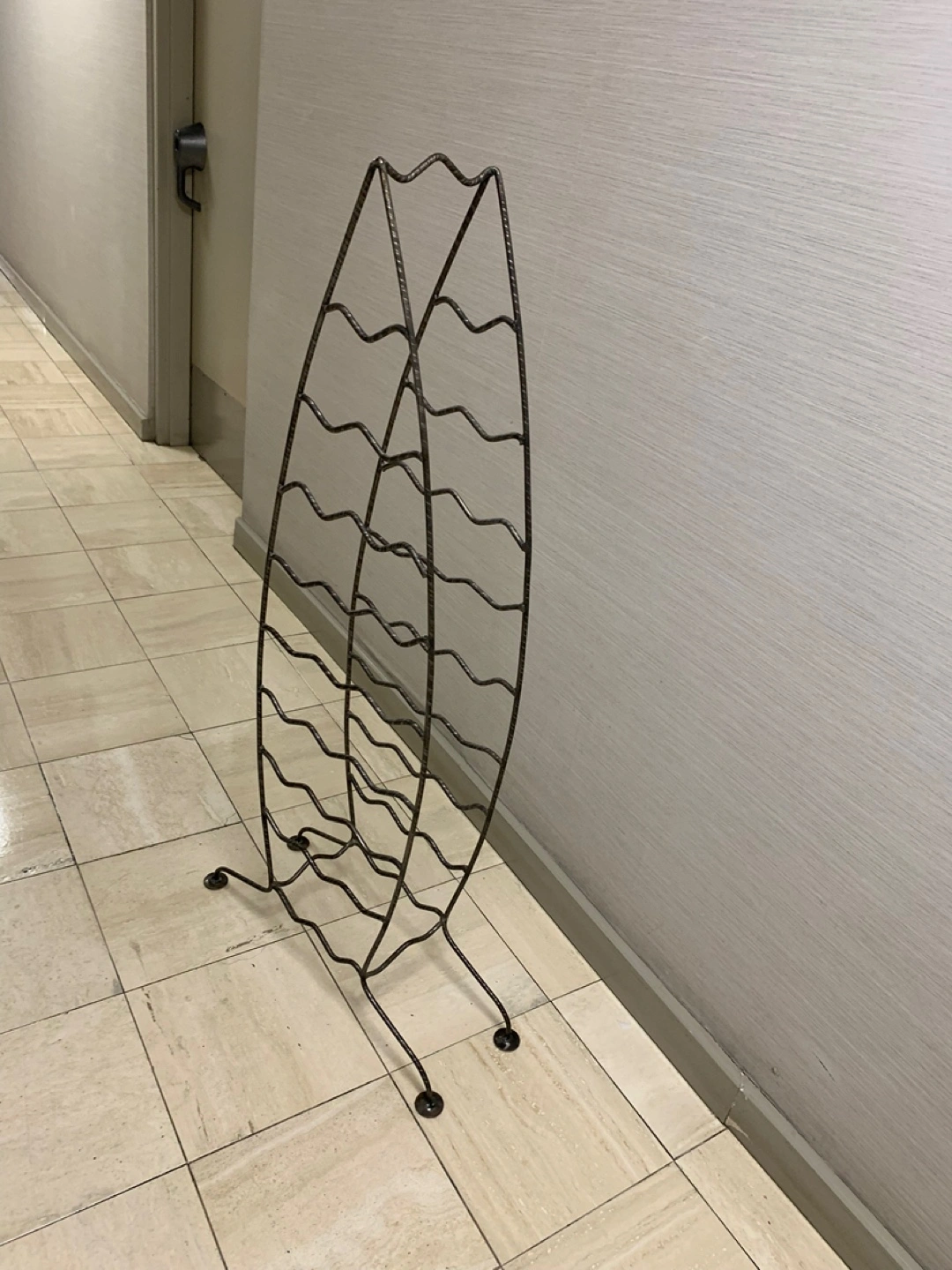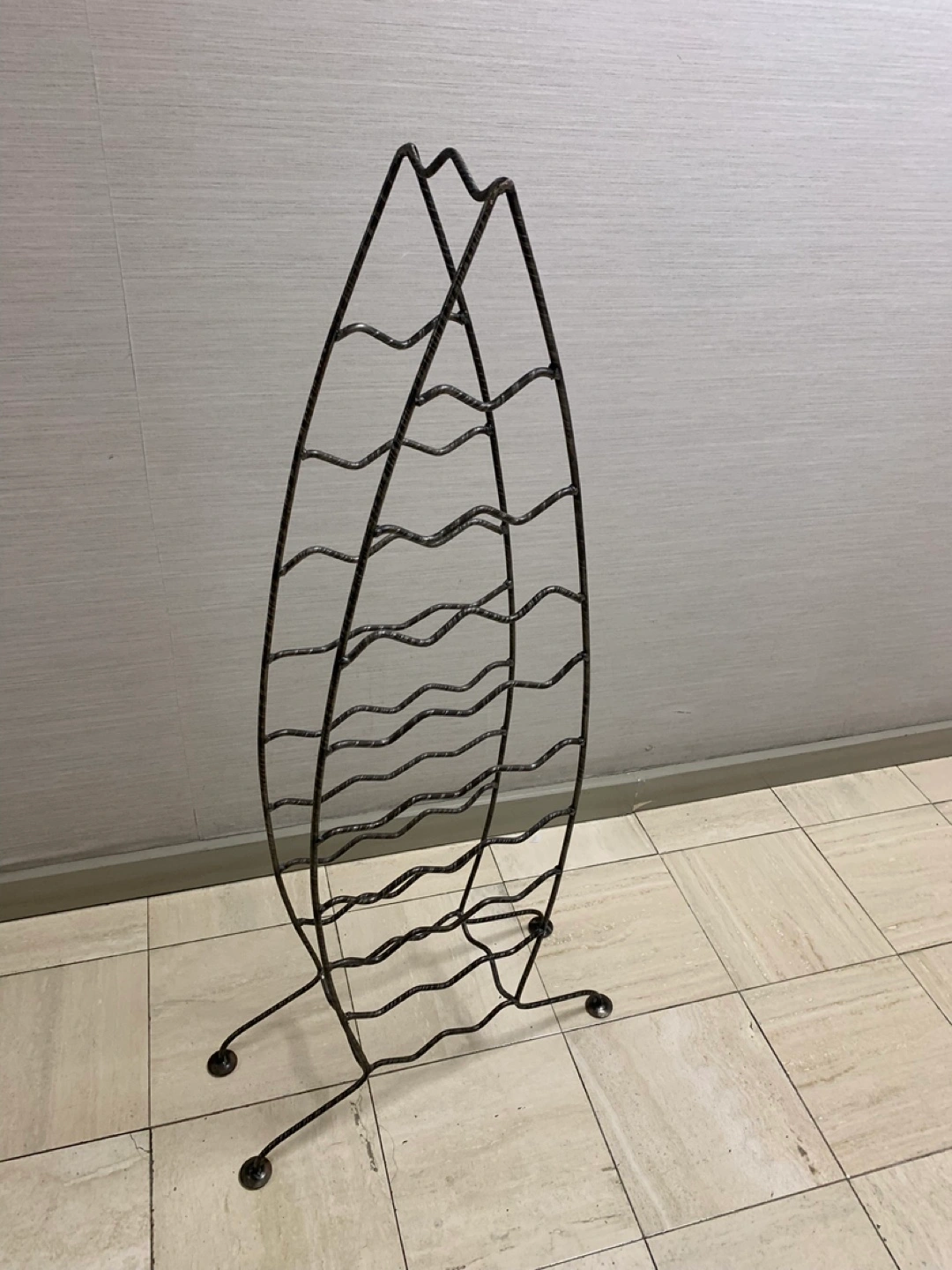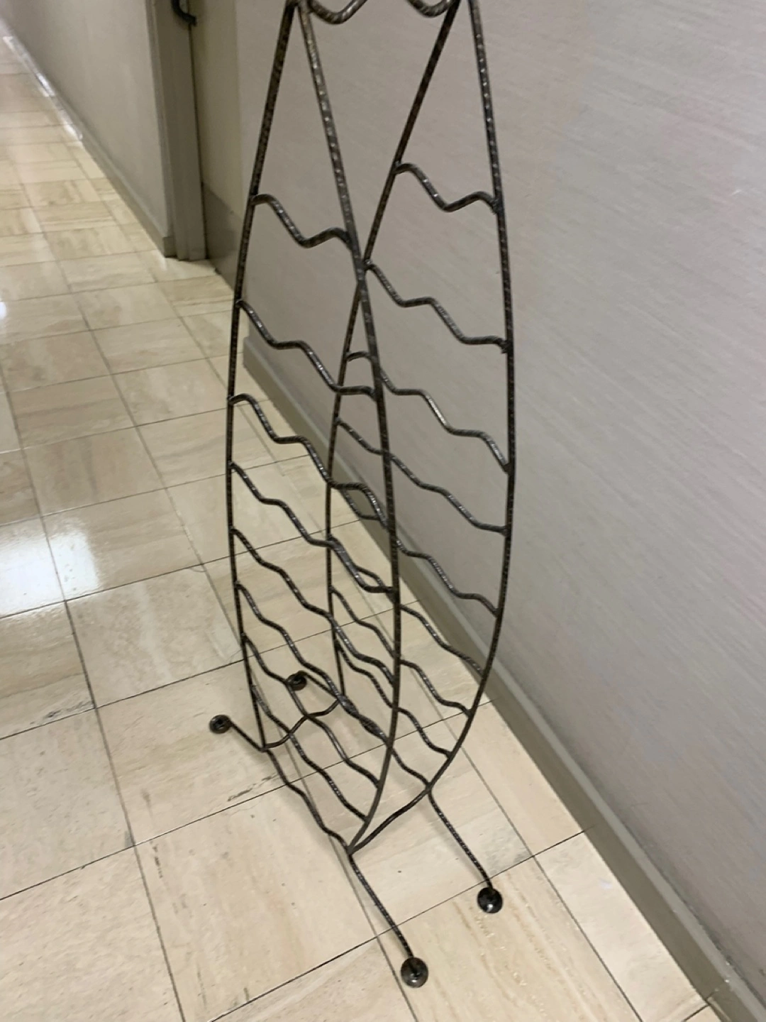144Selling a metal wine rack that holds up to 24 bottles. It's in great shape and ready to add some style to your home bar or kitchen. It has a stylish design!