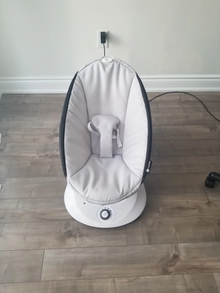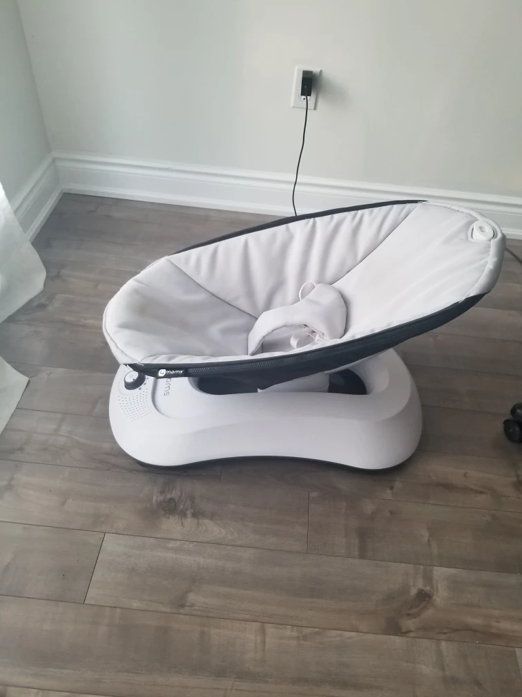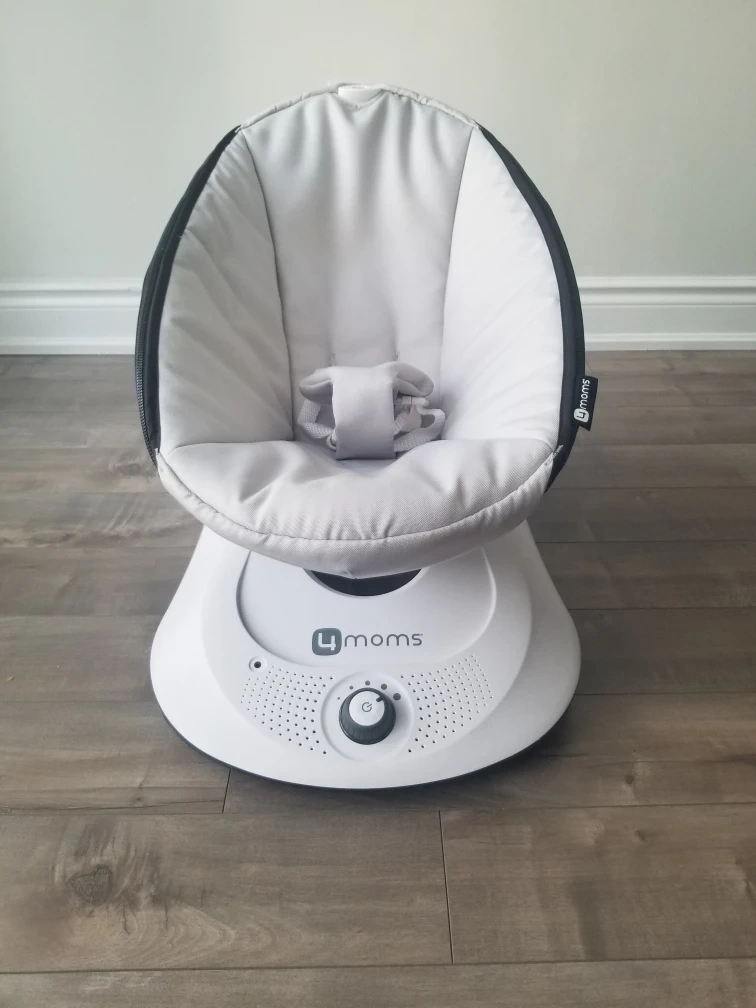 Selling a gently used 4moms MamaRoo baby swing. It's in great condition and has been well taken care of. This swing is perfect for soothing your little one with its various motions and speeds. It's a lifesaver for busy parents!