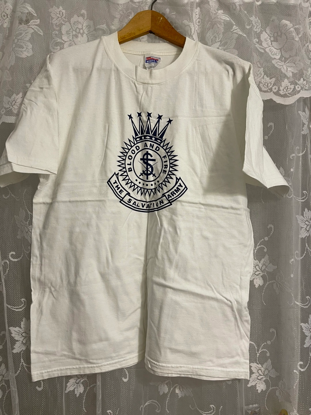 Here's a white t-shirt featuring The Salvation Army logo. One large and one XL - new